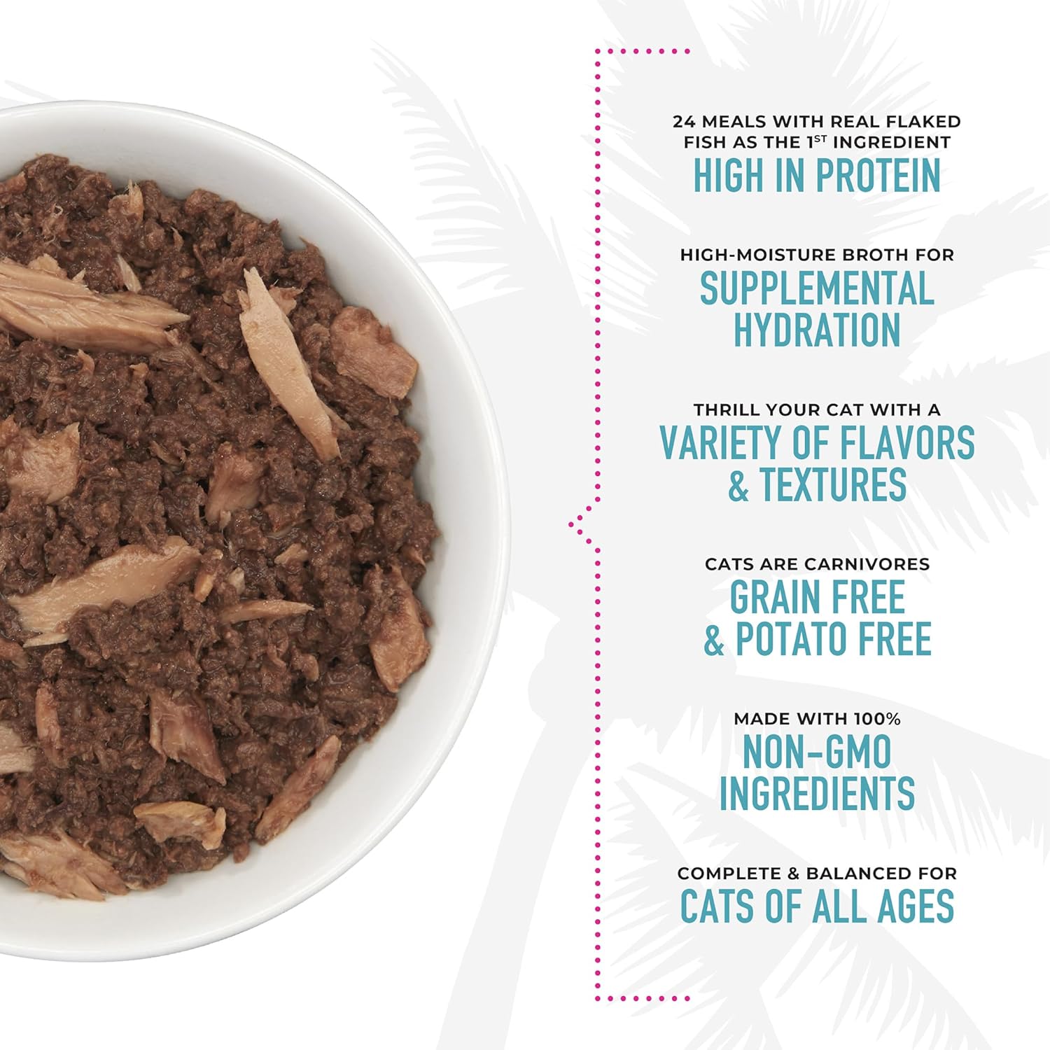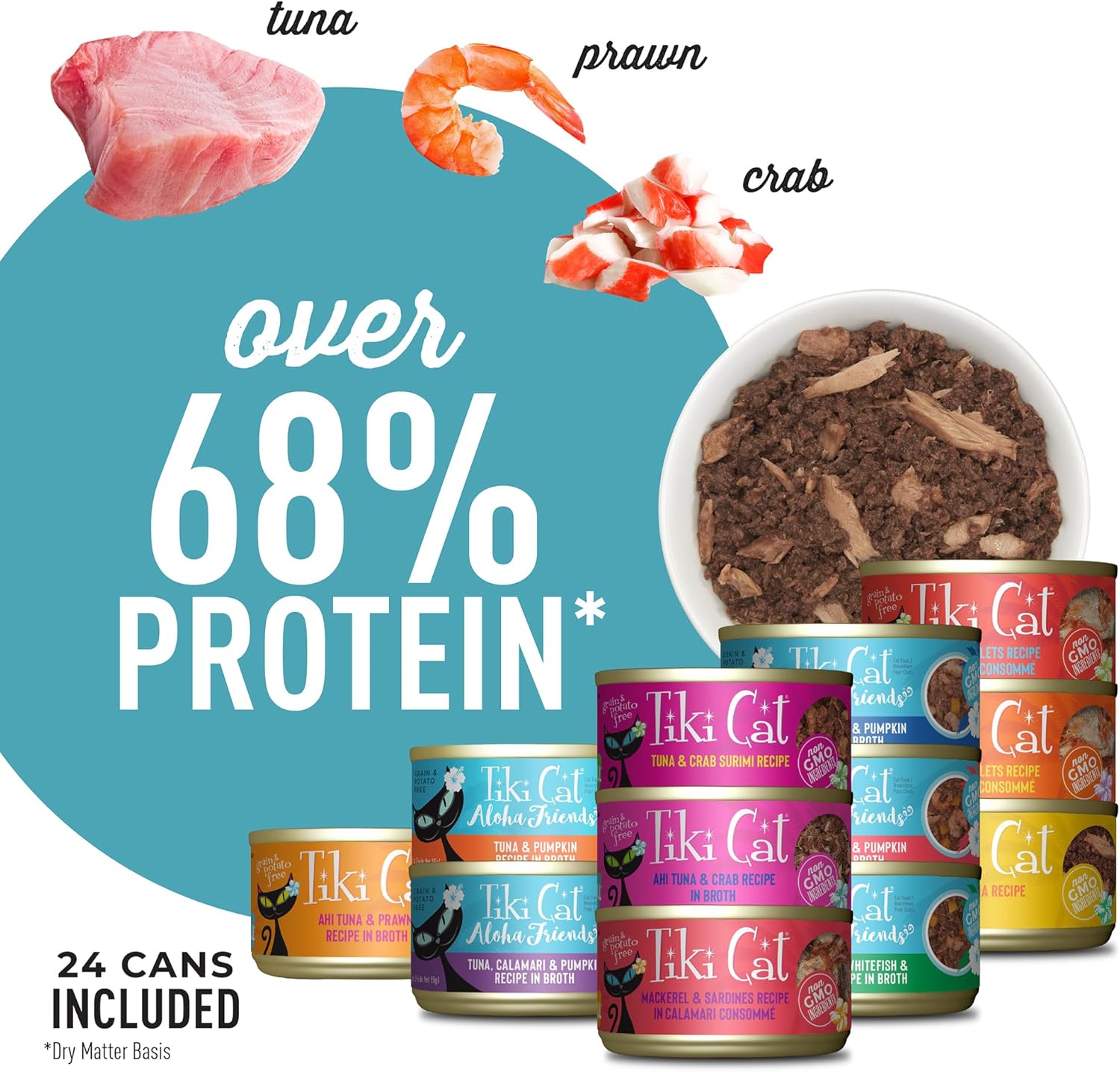 - 24 high-protein meals with real flaked fish as the first ingredients.