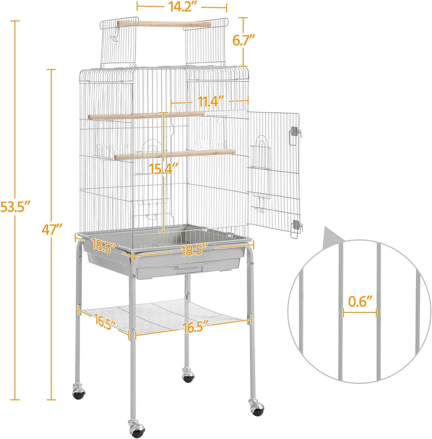 - Extra Accessory Storage: Another thoughtful design for pet parents is the extra storage shelf on the stand. It can keep bird cage cleaning tools, bird seeds and toys handy and neat