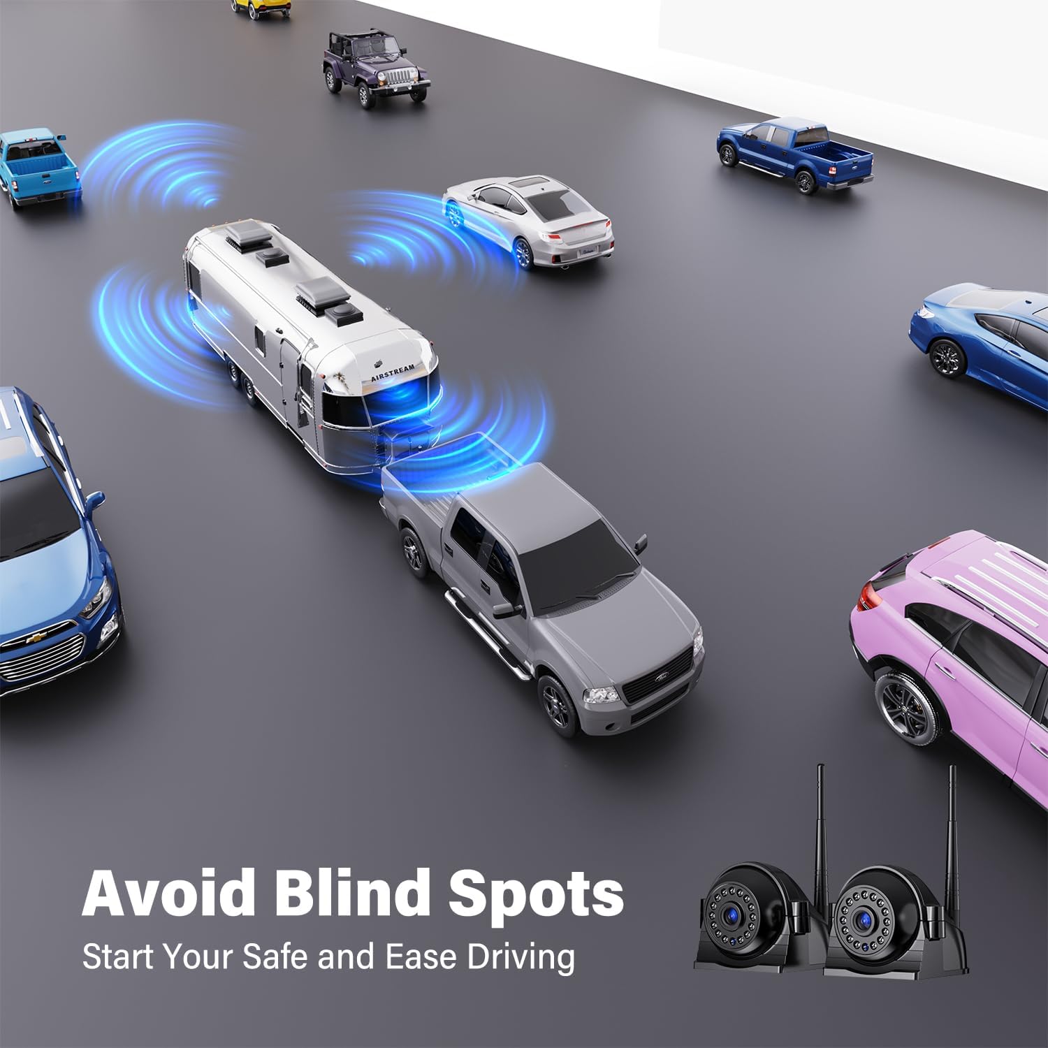 - 🚚🚚 Upgraded Wireless Signal System: This wireless back up camera system includes a 10 inch monitor and 2 wireless backup cameras. Adopts 2.4G wireless digital transmission and upgraded digital signal chip, it presents stable high-definition 1080P images/videos for reversing or monitoring.