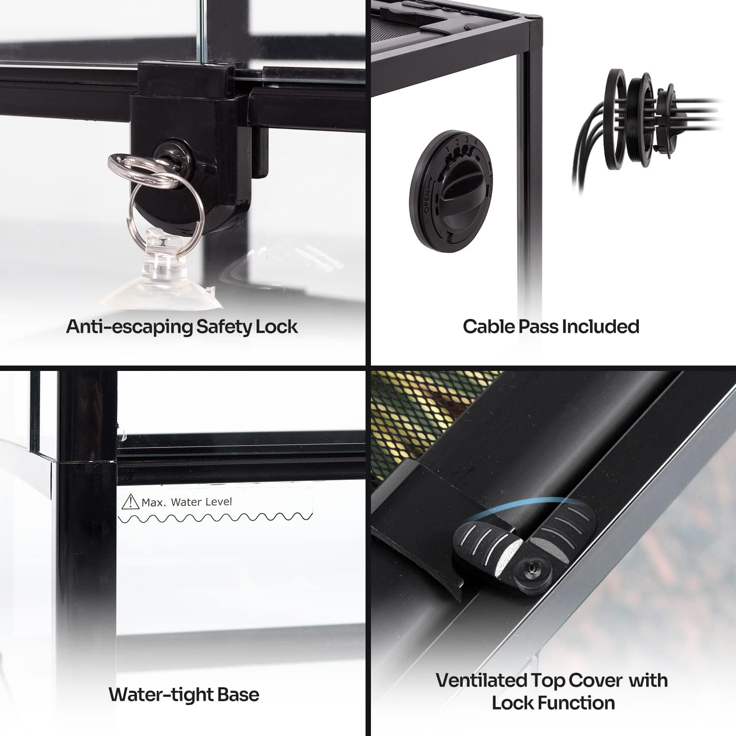 - [Patent Design]: This 45 gallon reptile terrarium made of high quality tempered glass, it's is sturdy and safe.