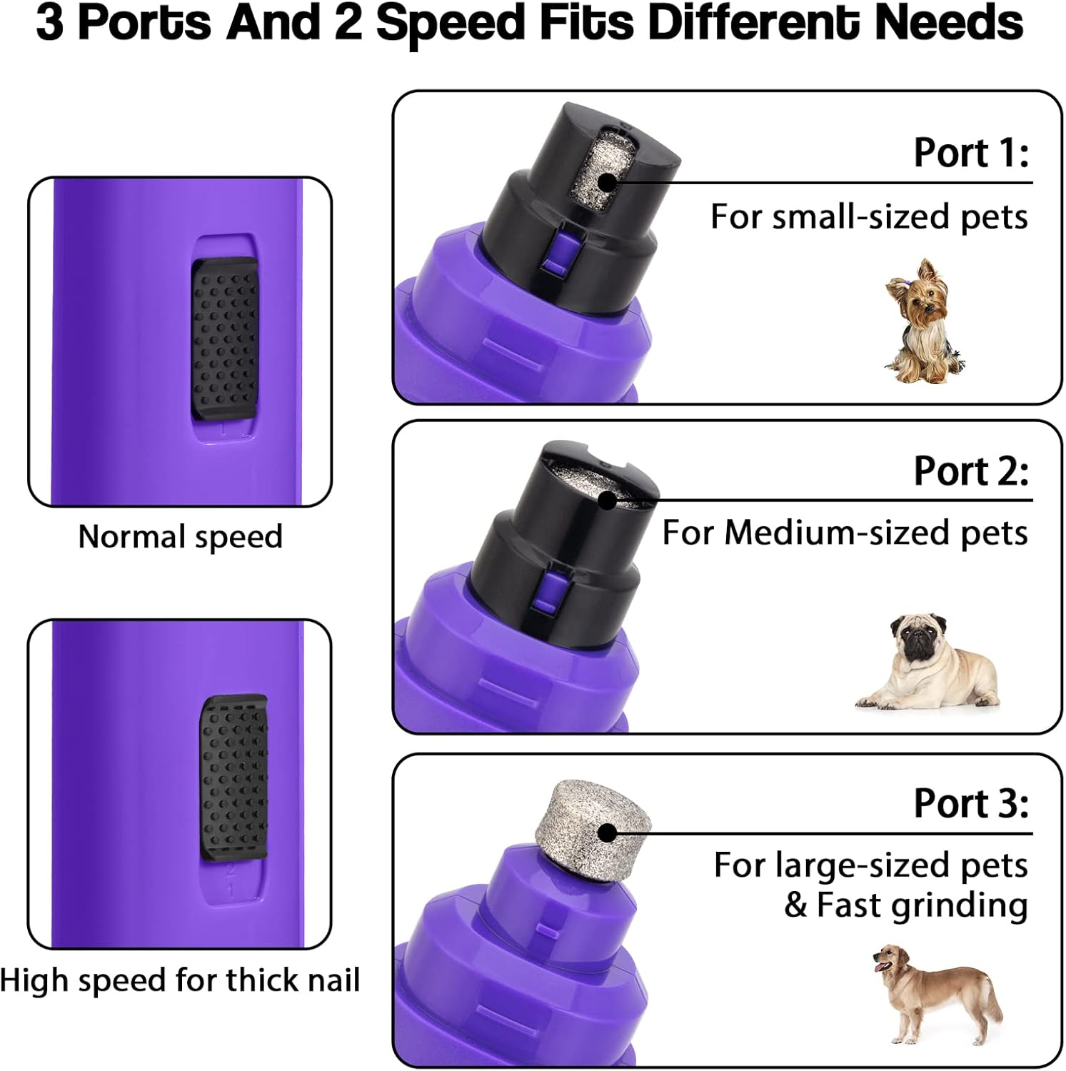 Casfuy Dog Nail Grinder Upgraded - Professional 2-Speed Electric Rechargeable Pet Nail Trimmer Painless Paws Grooming & Smoothing for Small Medium Large Dogs & Cats (Purple)