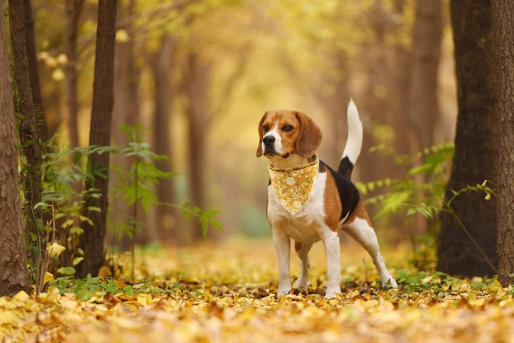 Lionet Paws Flower Dog Bandana,Fabric Yellow Dogs Kerchief for Small Medium Dogs,Dog Cotton Triangle Bibs Scarf for Girl Boy