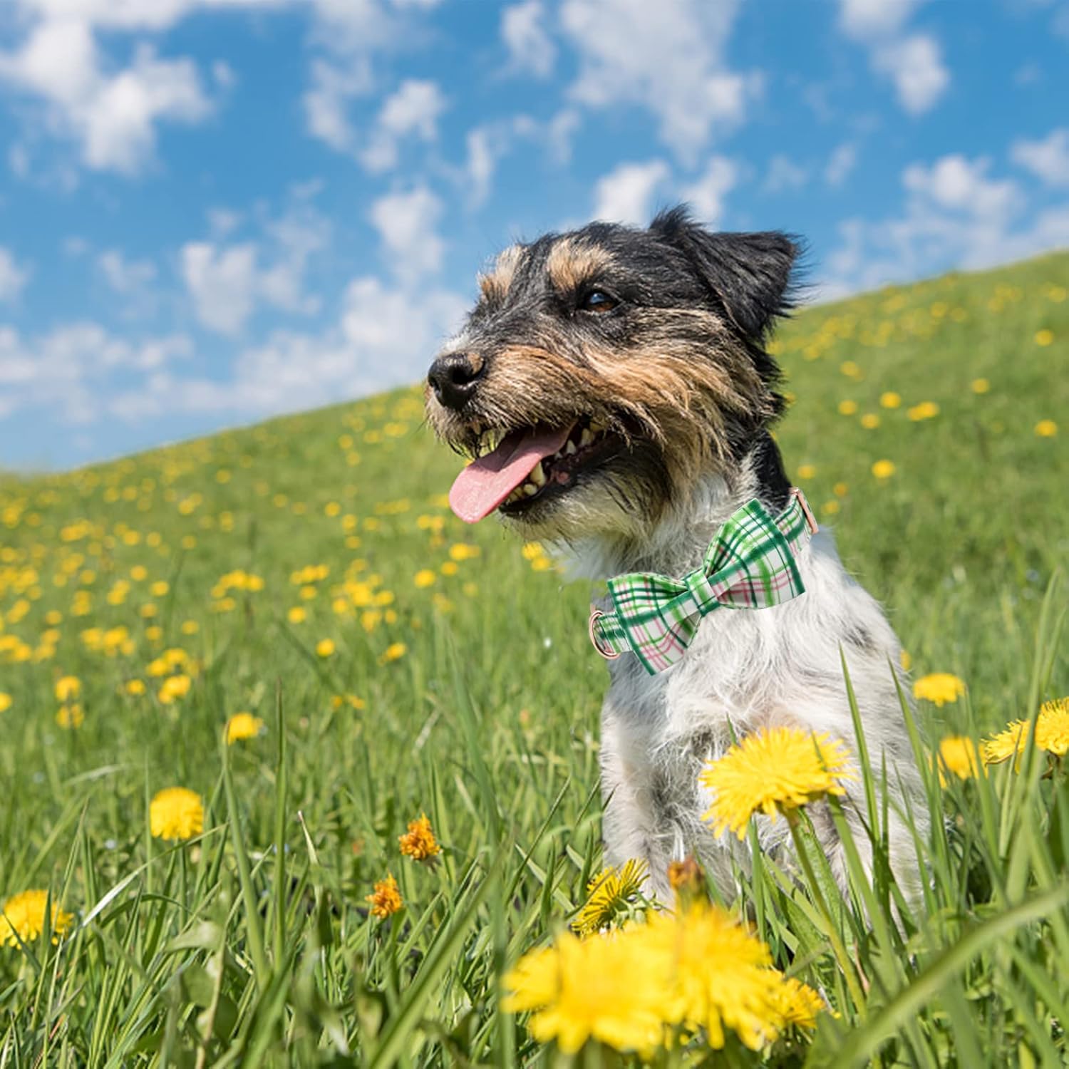 Elegant little tail Dog Collar with Bow - Pink with Green Plaid Boy or Girl Dog Collar Cute Bowtie Pet Collar Adjustable Dog Collar for Large Dogs