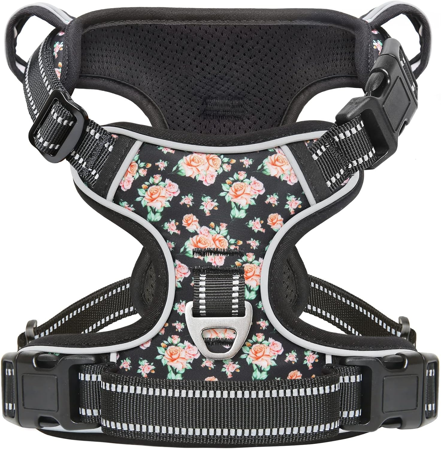 Timos Dog Harness, 3 Snap Buckles No-Pull Soft Padded Dog Vest with 2 Metal Leash Clips,Adjustable Reflective No Choke Pet Harness with Easy Control Handle for Small Dogs,Black Rose,S