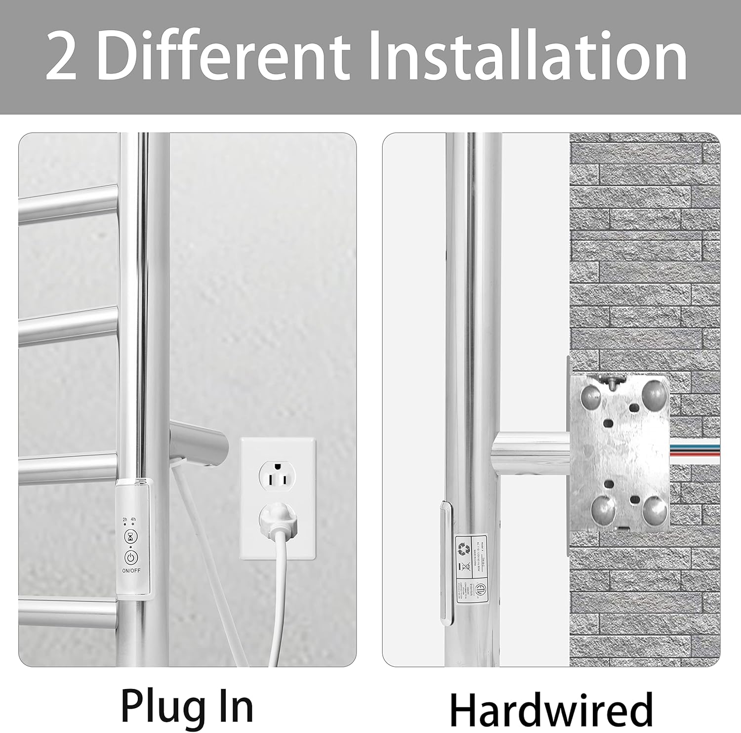 - Premium Quality with Elegant Look: The bath towel warmer is made of durable 304 stainless steel, easy to clean and durable use. IP56 Waterproof standard and wall-mounted design maximizes your floor space.