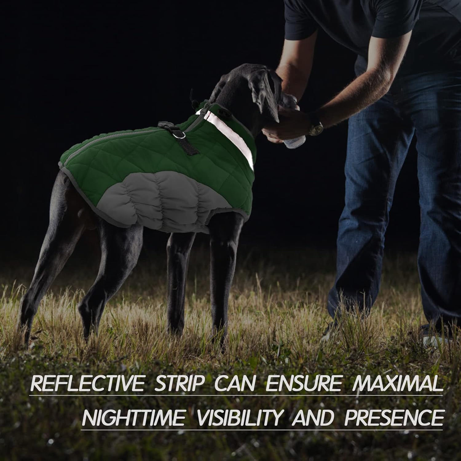 FUAMEY Dog Coat for Large Dogs,Waterproof Dog Winter Jacket with Harness Built in Puppy Cold Weather Coats Reflective Pet Vest with Zipper Warm Fleece Dogs Snowsuit Windproof Green XL