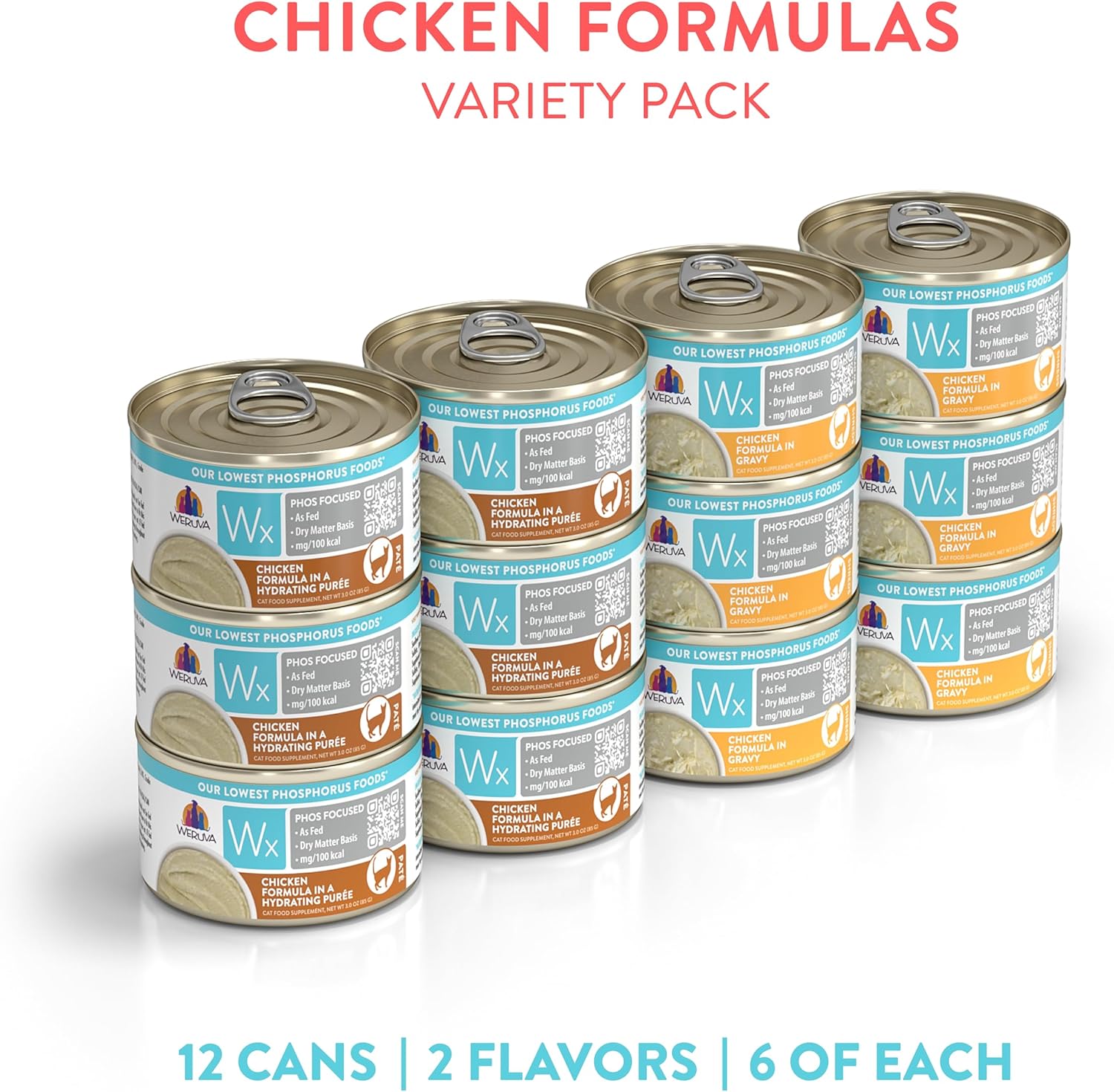 Weruva Wx Phos Focused, Chicken Formulas Variety Pack, 3oz Can (Pack of 12)