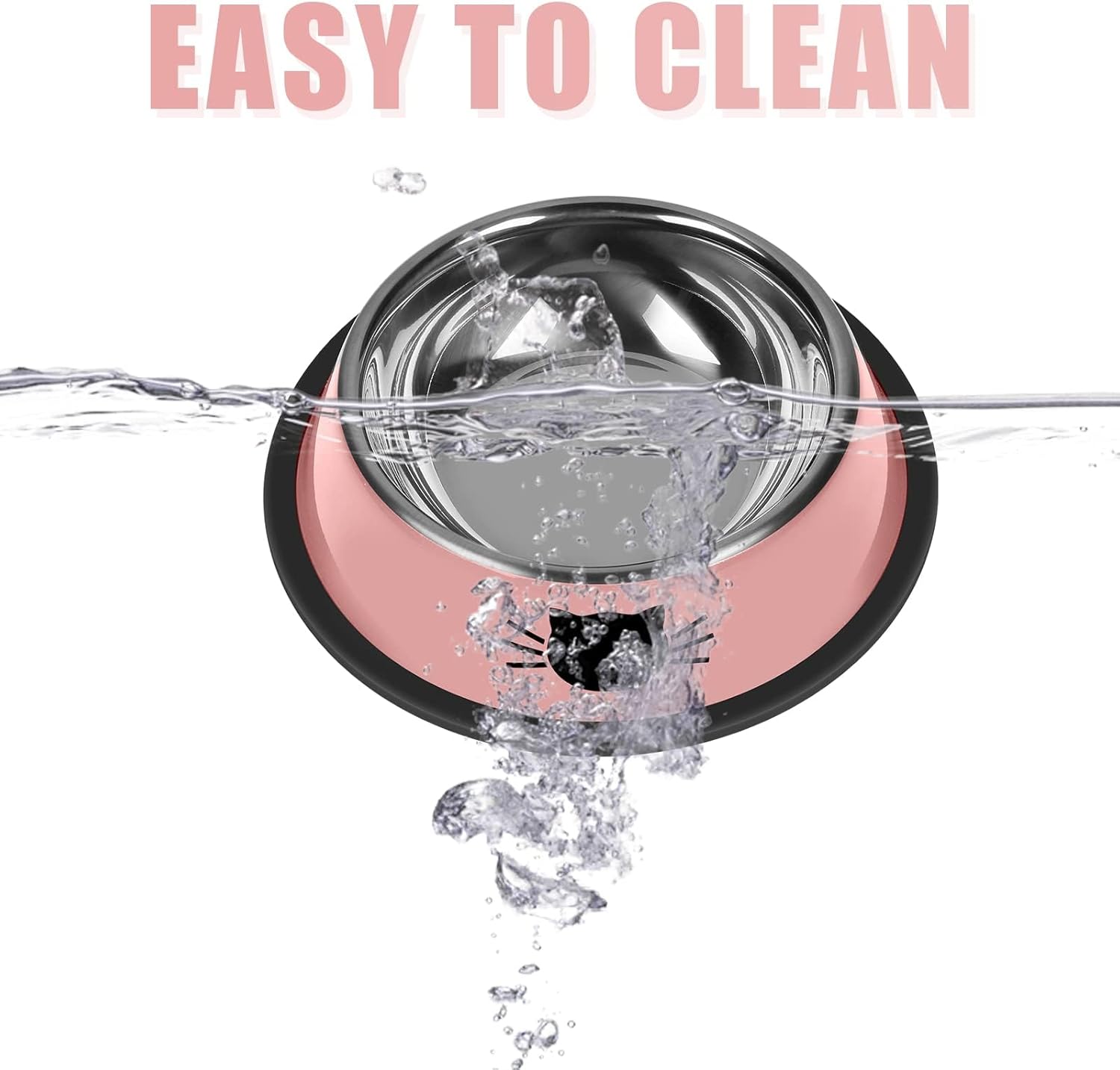 2Pcs Cat Bowls Non-Slip Stainless Steel Small Cat Food Bowls Unbreakable Thicken Cat Feeder 7 Oz Cat Dishes Suitable for Indoor Small Pets Removable Rubber Base Easily Clean Lovely Color