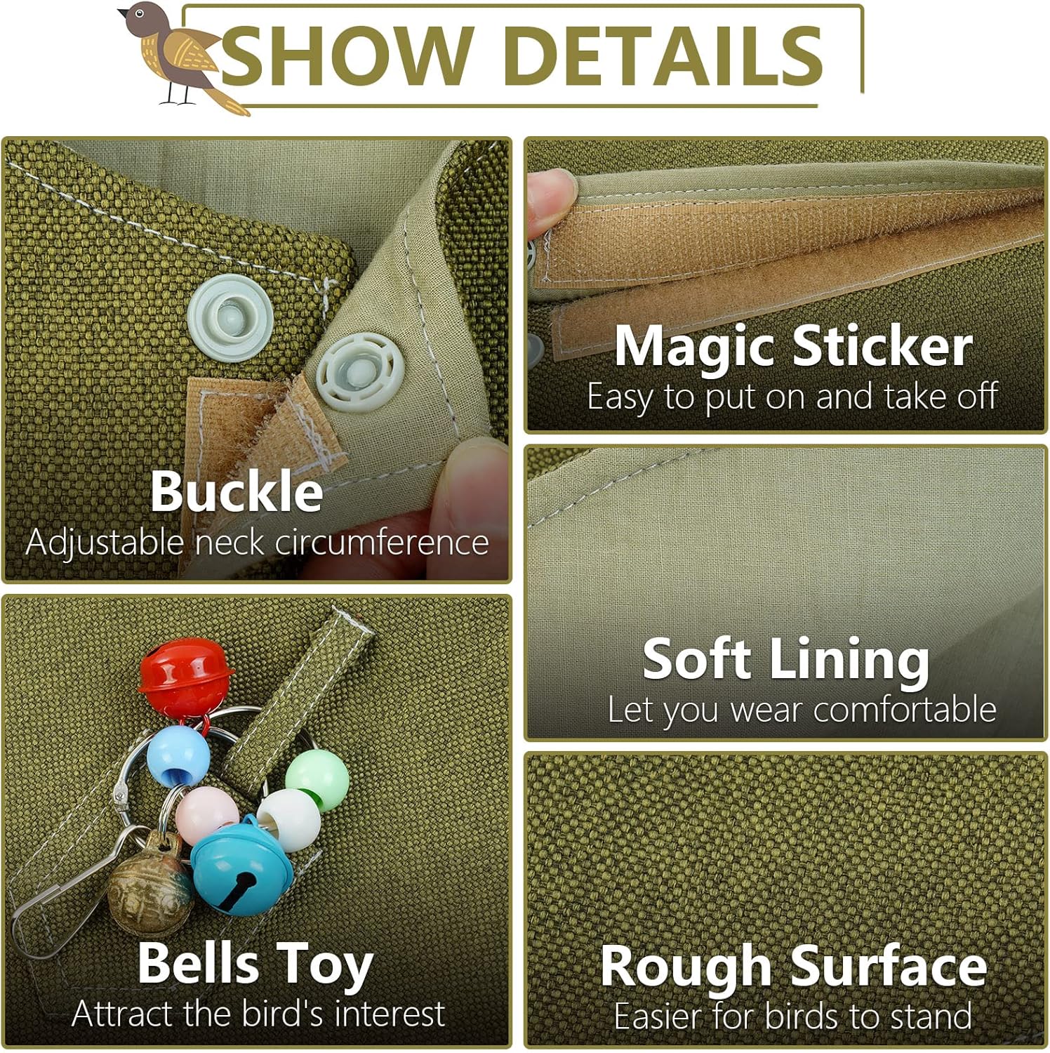 - Two Belts Design: Parrots diaper shawl are two loops on the shoulder top, you can hang a anklet for fixing pet birds, or some toys and treats for them playing on your shoulder