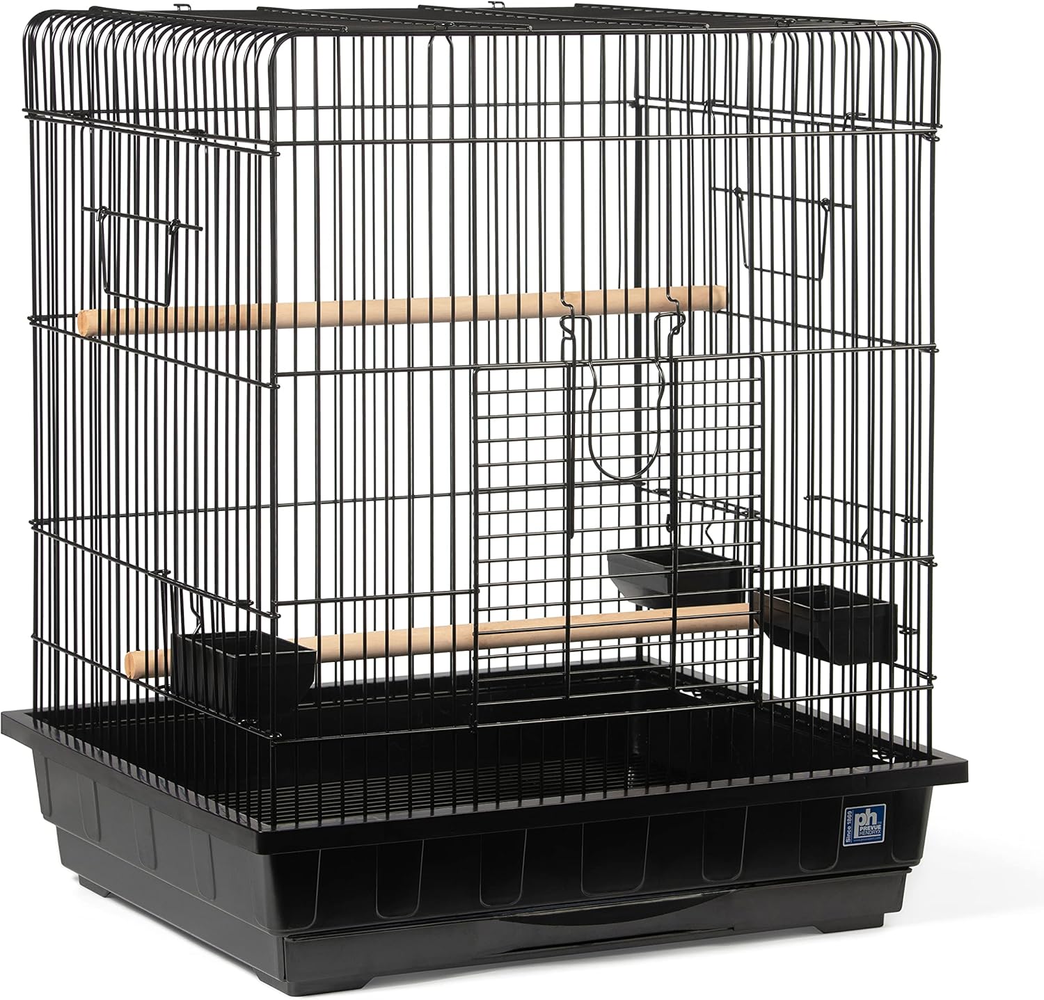 - Large front landing-style door allows access to cage interior and a place for bird to perch before entering or existing