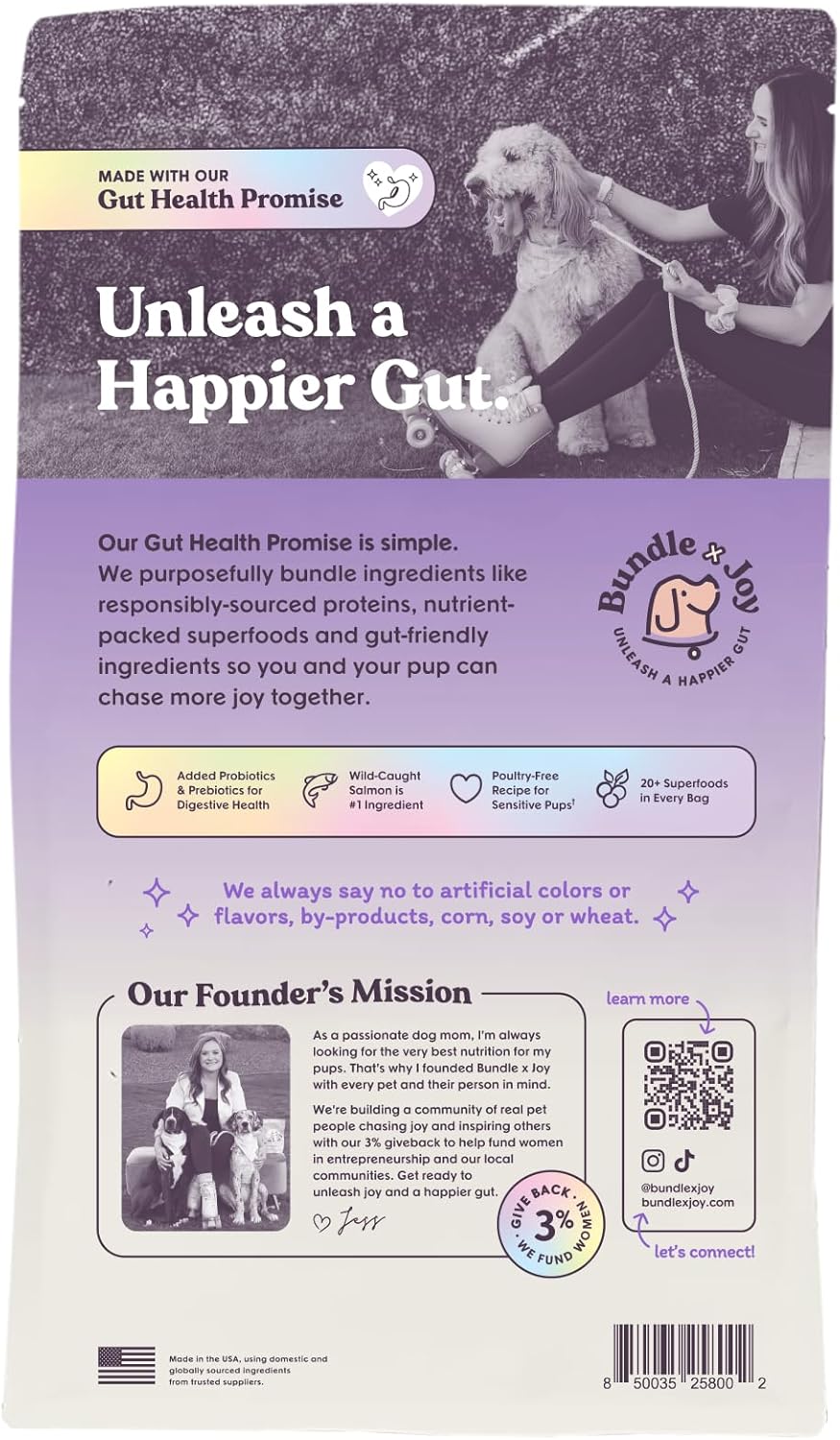 Bundle x Joy Vibrant Probiotic Dog Food Dry, Salmon, 18lb Bag, Allergy and Gut-Friendly Adult Kibble for Digestive Health with Wild-Caught Salmon, 20 Plant Based Superfoods, Grain x Poultry Free