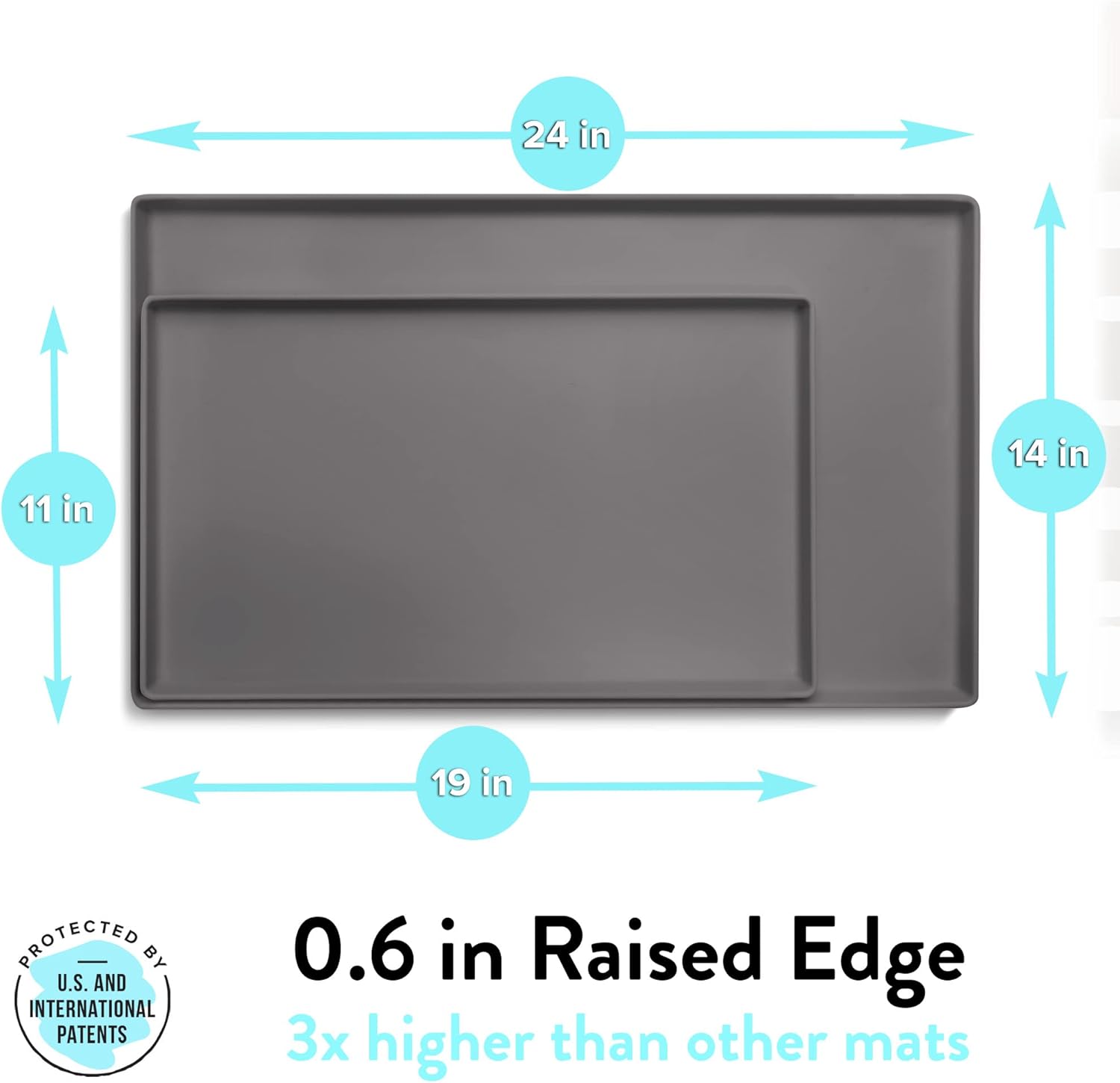 CatGuru Cat Food Mat, Small & Large Feeding Mats, 100% Waterproof Silicone Pet Placemat, Non-Slip Cat Food and Water Bowl or Water Fountain (Large, Carbon)