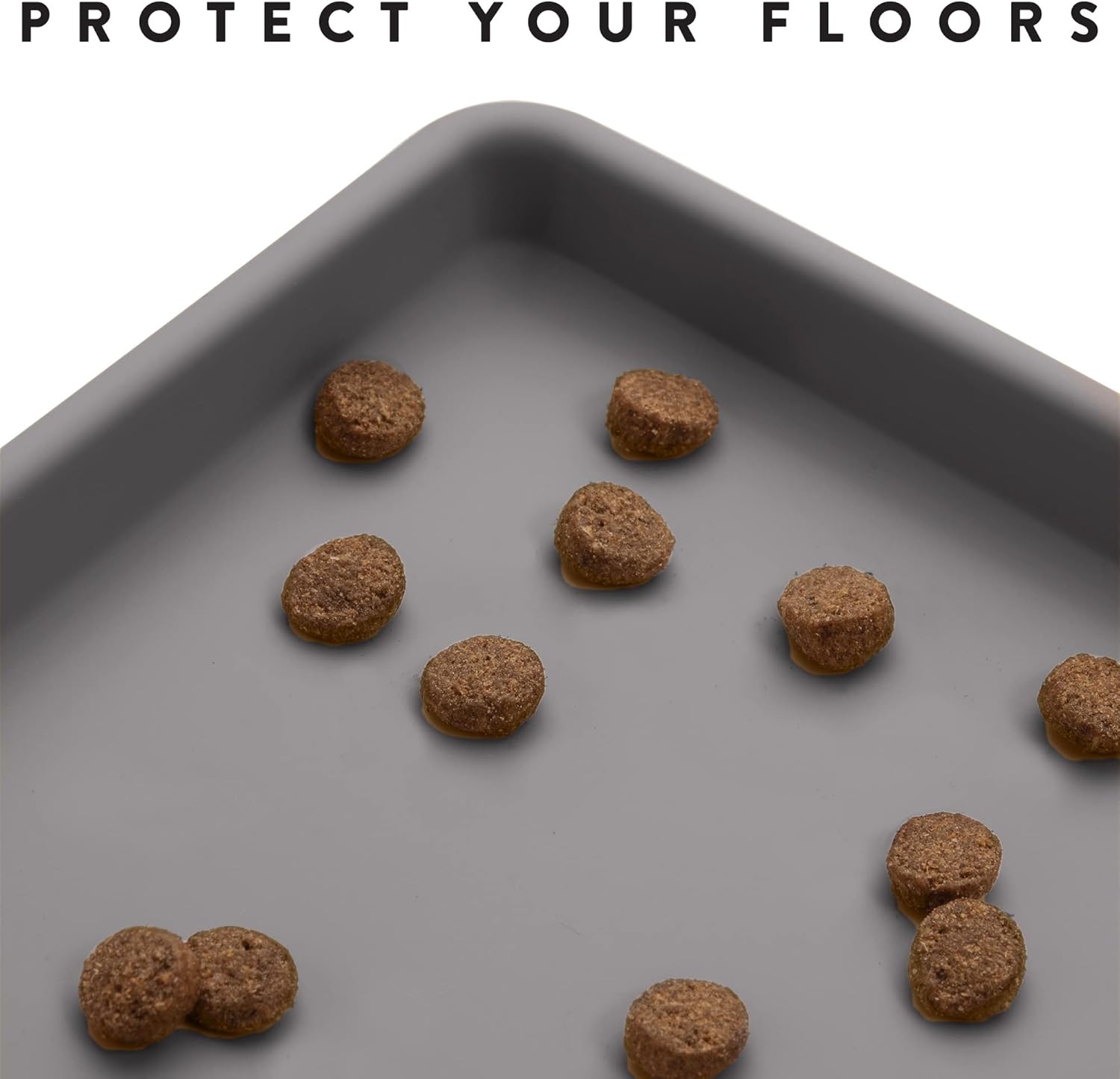 - ⭐️ EXTRA HIGH EDGE: CatGuru Cat Food Mat is the only cat food mat on the market that can hold up to 5 cups of spilled food and water due to the raised outer edges. This heavy duty pet food mat is specially designed for messy eaters. Use this cat mat under cat bowls, cat water fountain or cat feeder to protect your floors.