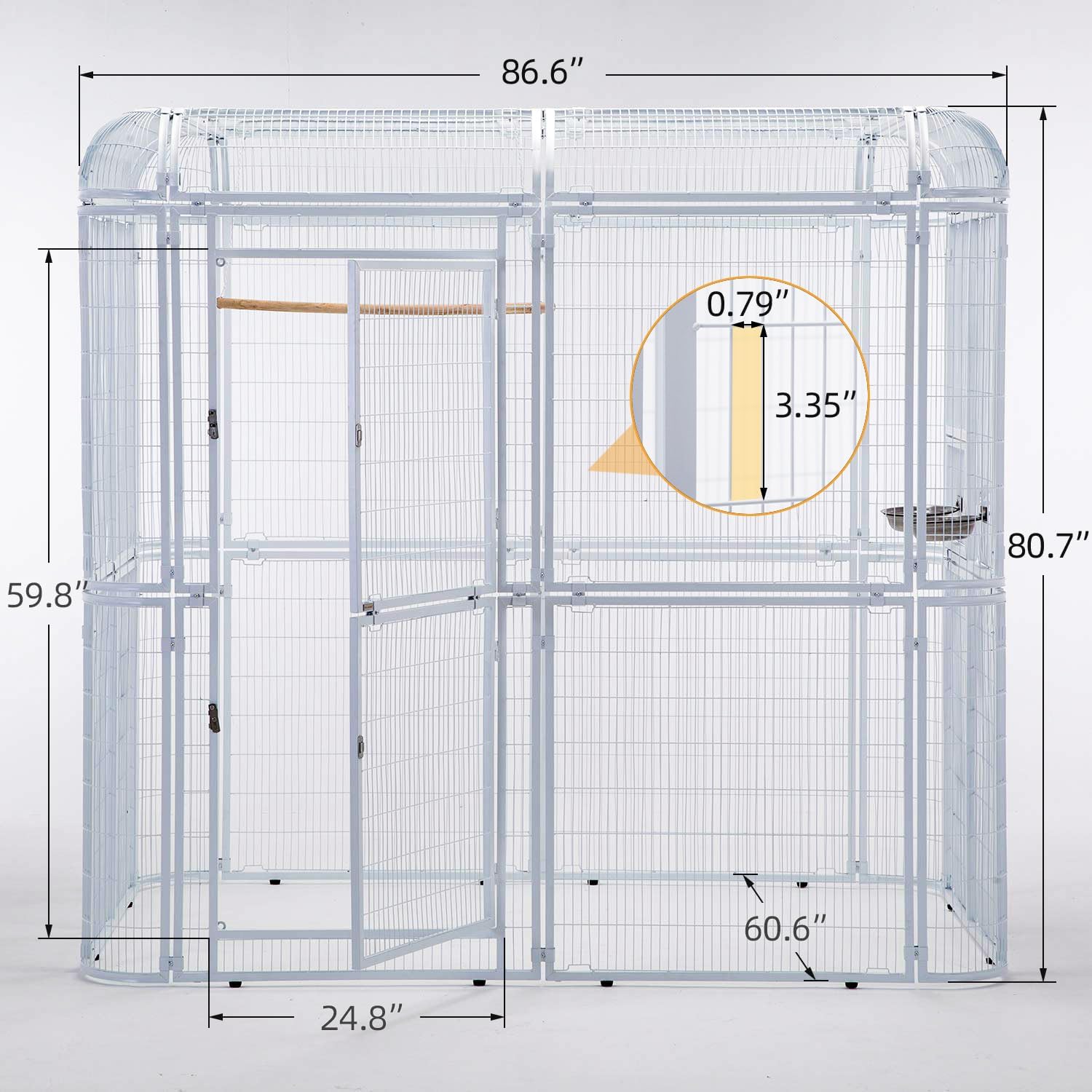 - Need to Assemble - The cage comes with three separate packages. Overall Size: 86.5”L x 60.5”W x 80.39”H;Door size: 59.8"H X 24.8"W