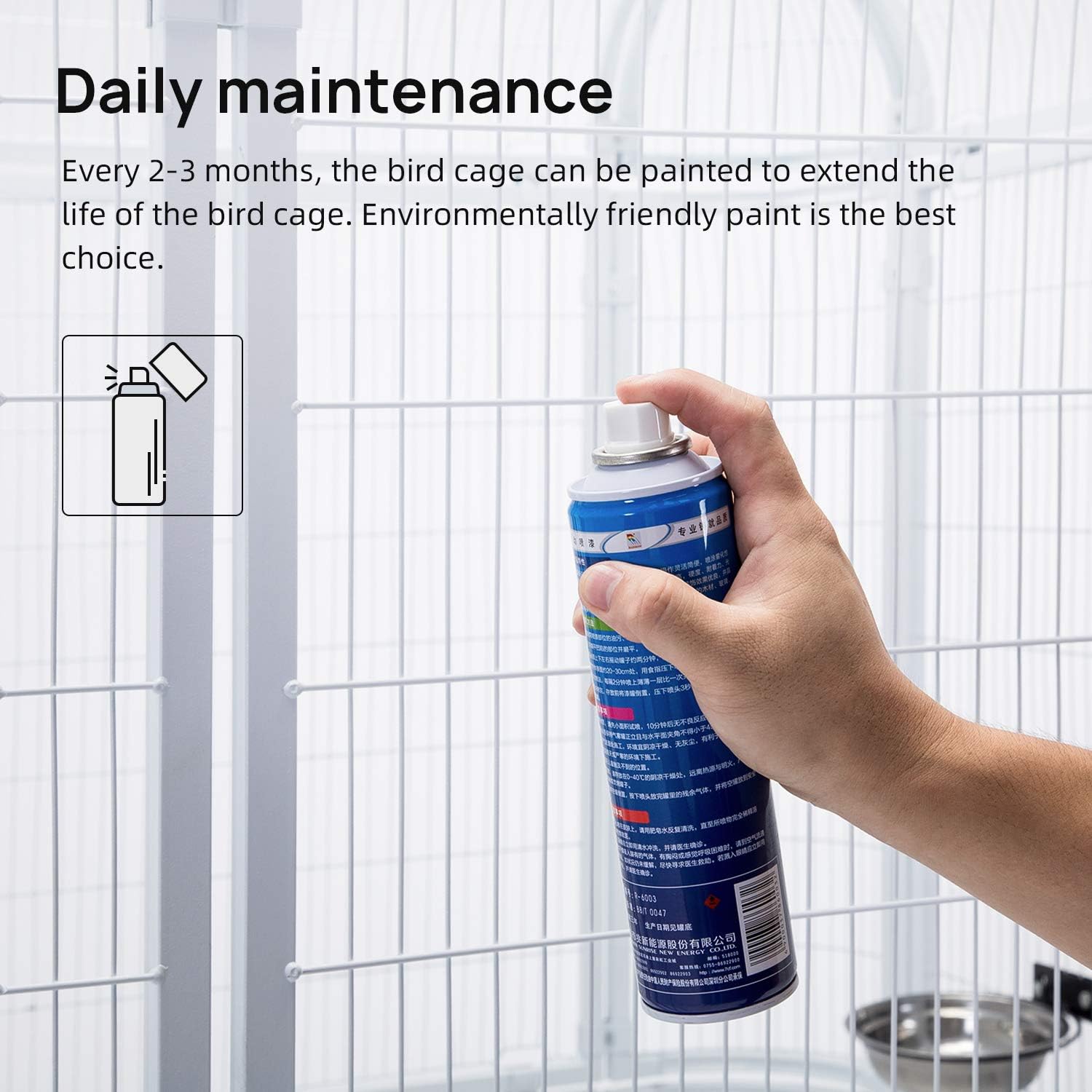 - Security - Welded stainless steel coated with a non-toxic powdered finish avoids birds' chewing & Suitable bar space prevents the risk of bird’s escaping.