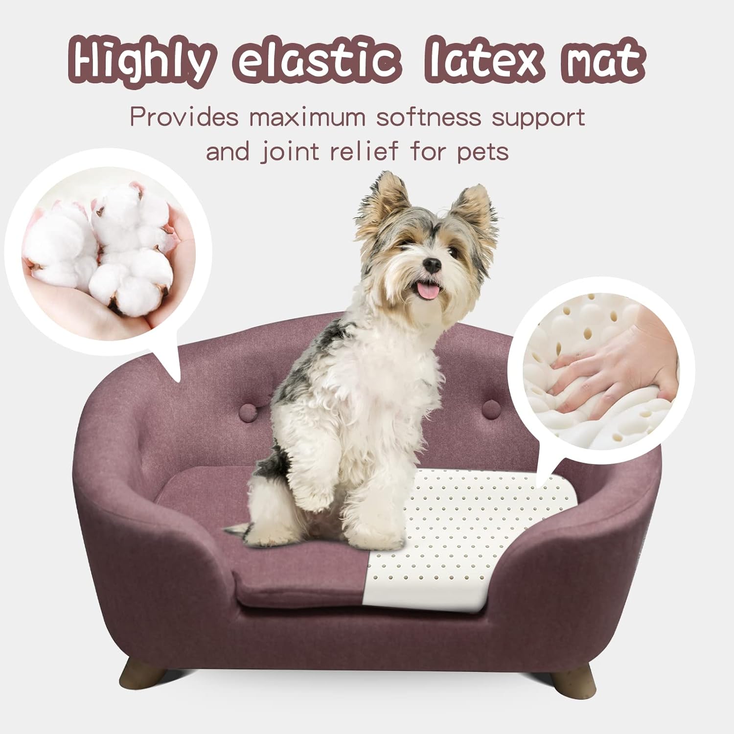 - Sofa Style Bed: The interior of the pet sofa is filled with thick and soft memory foam to reduce body fatigue in puppies and provide a comfortable space for your pet, providing goose-feather-like softness, comfort and adequate support. The 2-inch legs lift the pet bed off the ground so your pet doesn't have to feel the chill from the cold ground, which is responsible for the safety of your pets.