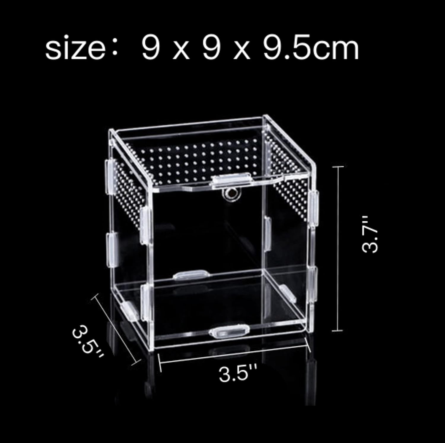 - 【Material】The reptile feeding box is made of acrylic, the assembled size is 9x9x9.5cm/3.5x3.5x3.7inch,360 degree full view, completely transparent, clear and bright, so that you can see the behavior of small pets anytime, anywhere. It is easy to observe and clean.