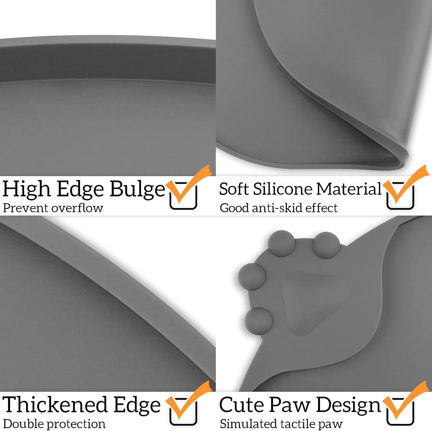 KPWACD Silicone Pet Placemat for Dogs and Cats, Non-Slip Waterproof Pet Feeding Bowl Mat Prevent Food and Water Overflow, High-Lips Puppy Dish Tray Mats Suitable for Large Medium Small Pets, Grey