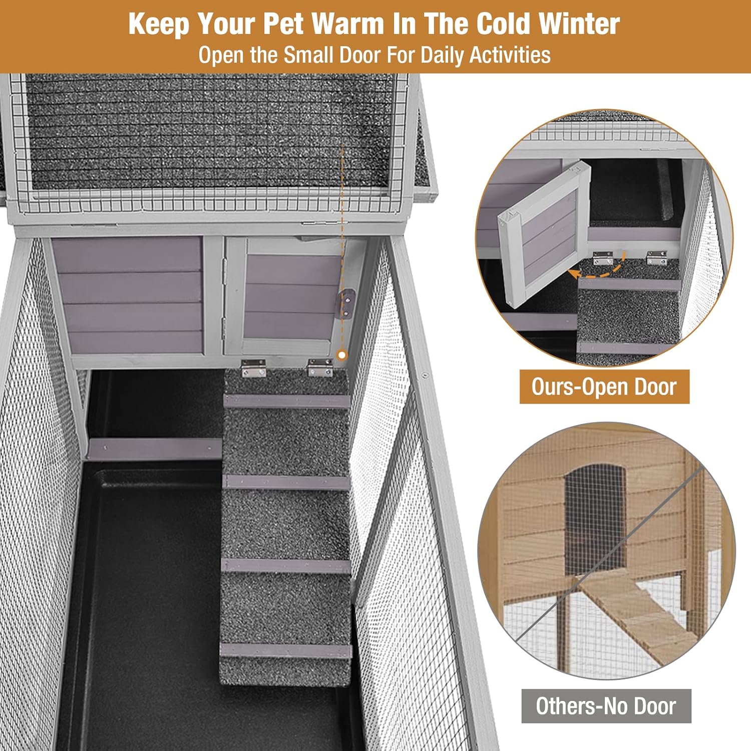 - 😊【Small Door】A small door to close the sleeping house, keep your pet warm in the cold winter, and open it for ventilation and daily activities.