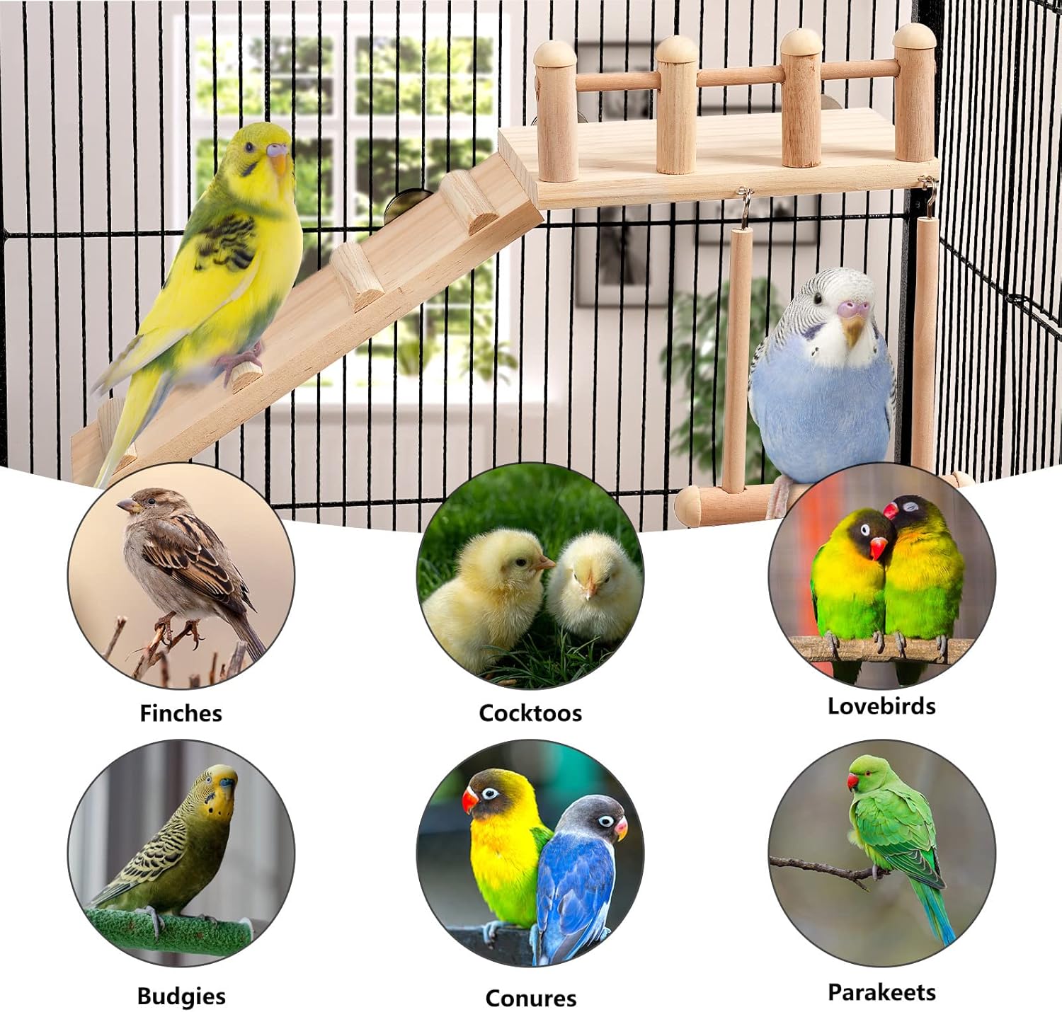 Bird Perches Platform Swing with Climbing Ladder, Parakeet Cage Accessories Wooden Playing Gyms Exercise Sturdy for Small Birds