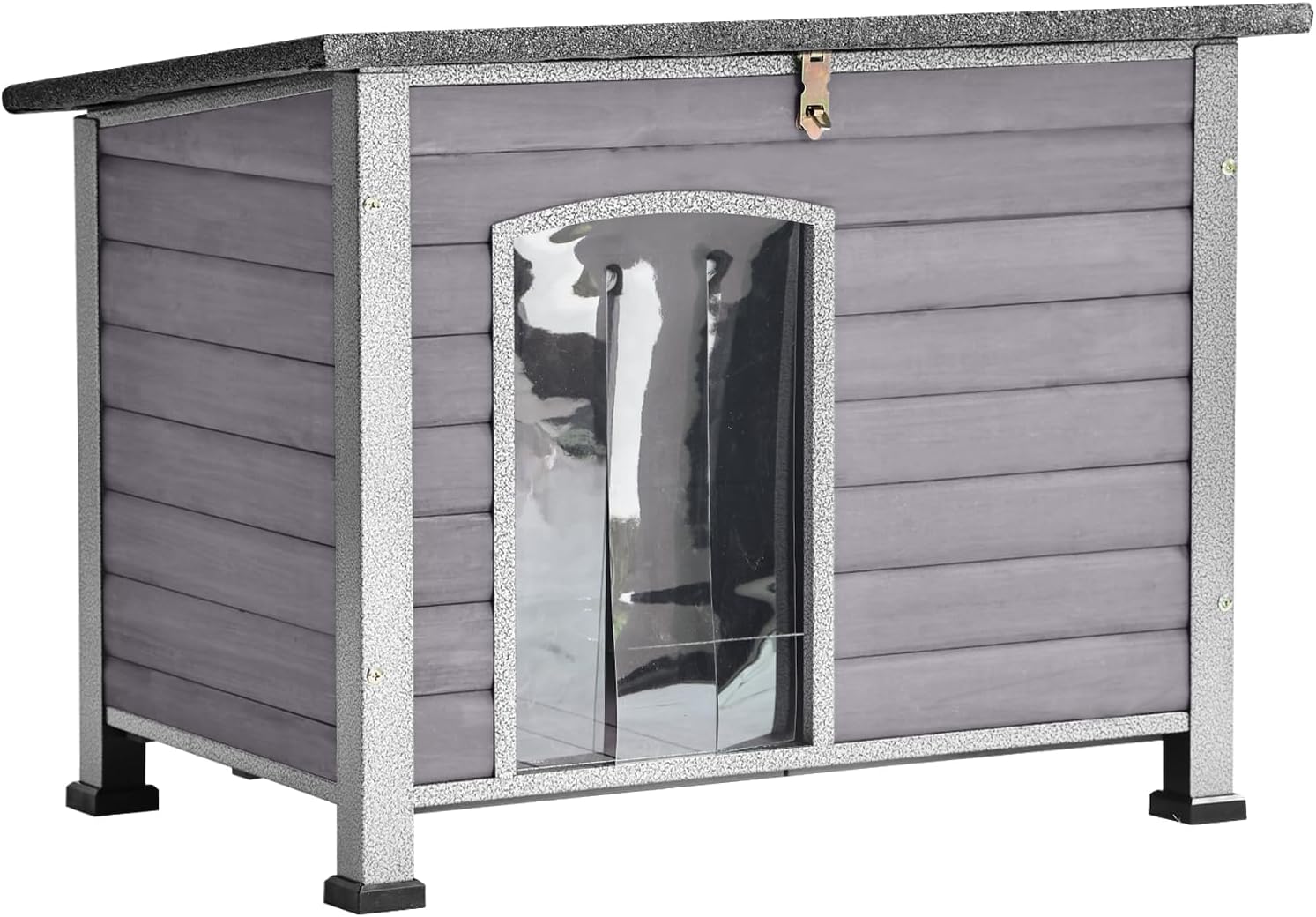 Aivituvin Dog House Outdoor Indoor Weatherproof Dog House for Small & Medium & Large Dogs with Unique All-Around Iron Frame&Raised Feet(Grey)