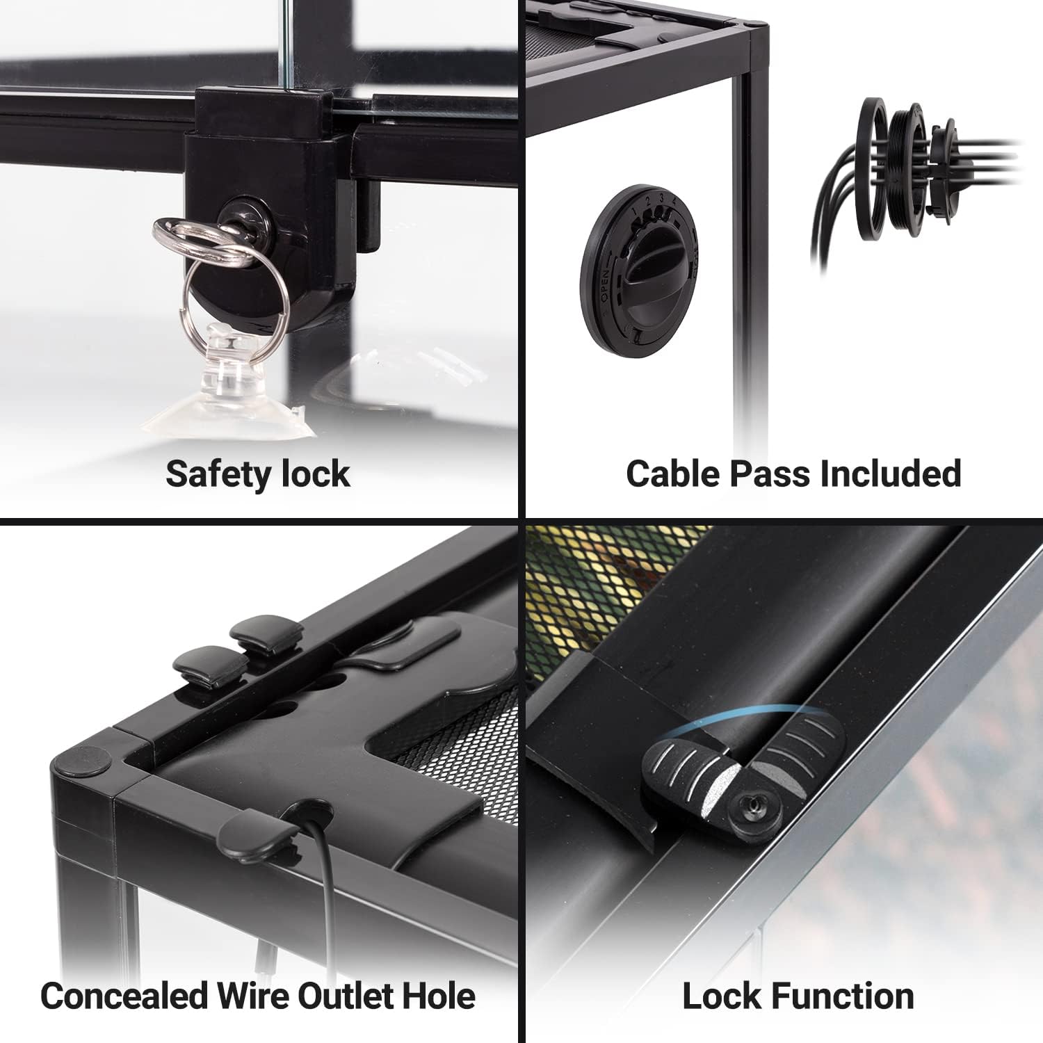 - 【Double Hinge Door】: The front door can open separately and it's easy for you to feed, clean or add decoration. Safety lock to prevent pet escape. The terrariums come with plants growing cotton mat, it can help increase the humidity and fix the plants.