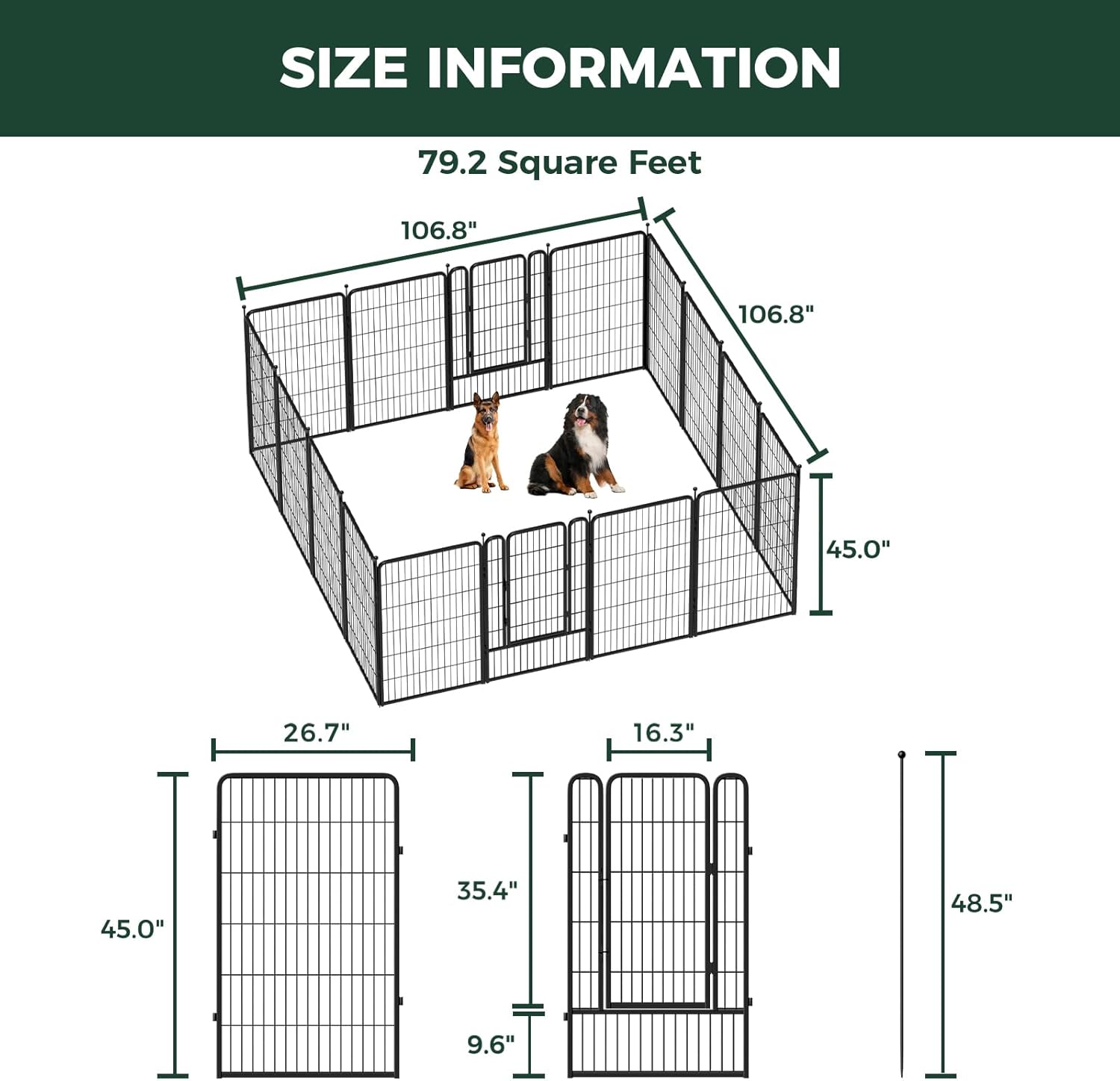 FXW Rollick Unleashed Dog Playpen for Indoor, Yard, RV Camping, 45 inch 16 Panels for Large Dogs│Patented