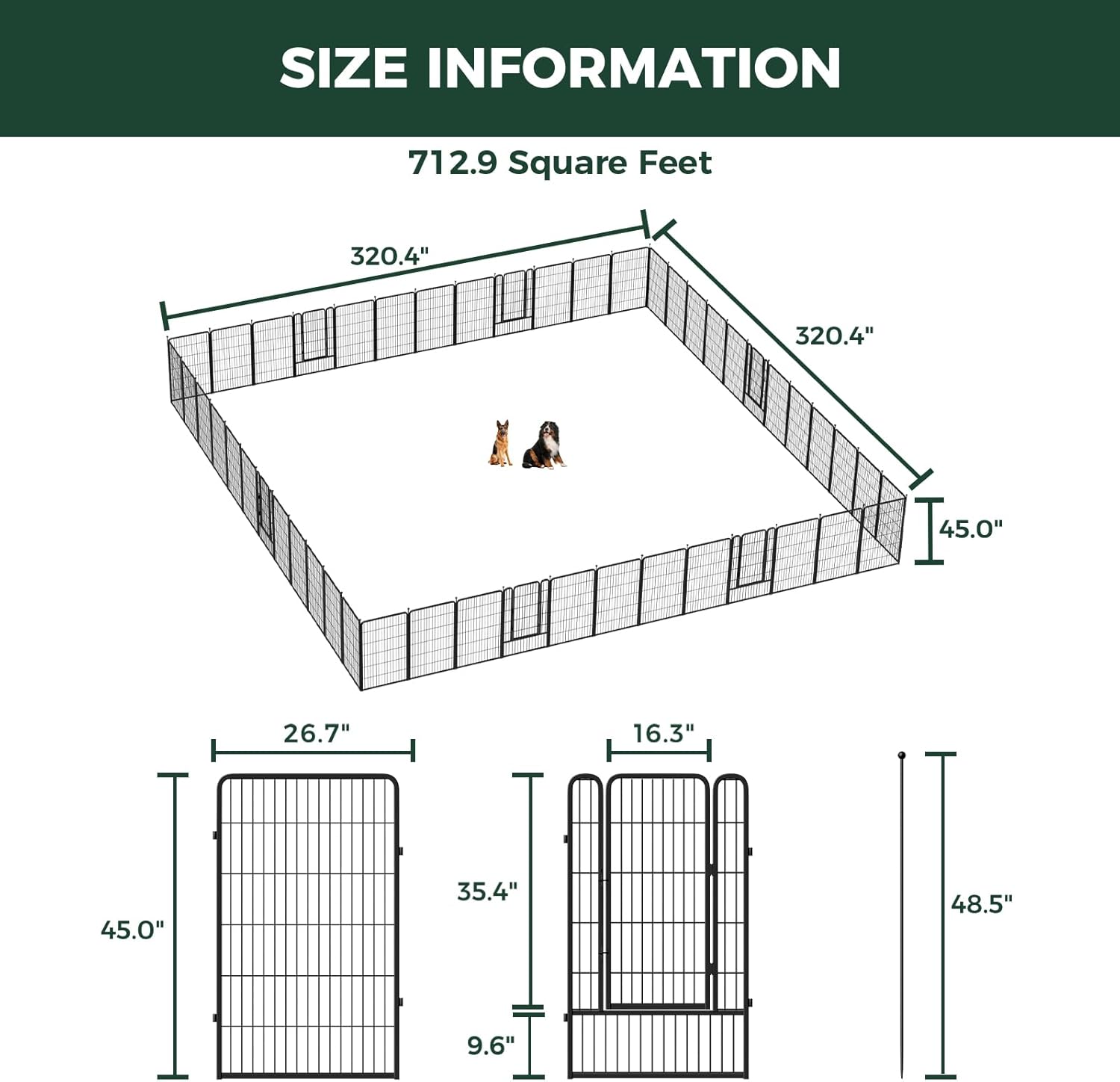 - Super easy to assemble: It won’t take you more than 5 minutes to assemble these portable dog fences as well as pack them away due to the rod-connected design. Meanwhile, panels can be added or removed freely to give you a fully flexible area and arrange the dog pen in any shape you need.