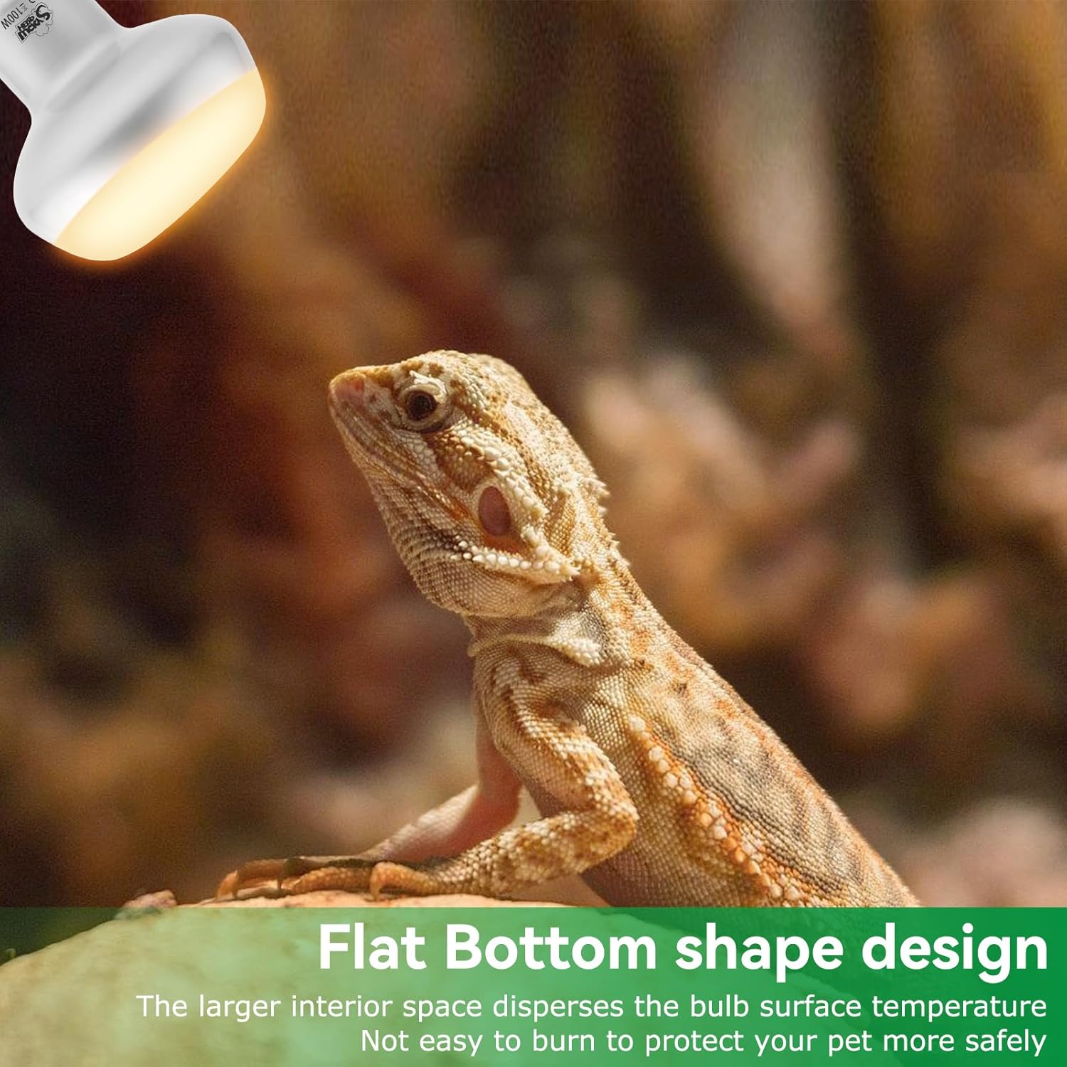 - Special Feature : Flat bottom design, 30° intense spotlight bulb, reptile light bulb, heat light bulb for reptiles