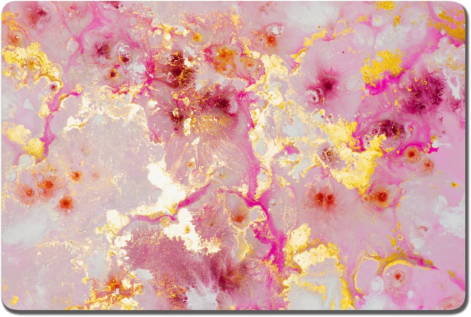 Rnivvi Dog Food Mat, 12" x 19" Absorbent Dog Cat Bowl Mat for Food and Water, Cute Anti-Slip Rubber Pet Feeding Rug Protect Floors, Puppy Placemat for Feeding & Watering Supplies, Pink Gold