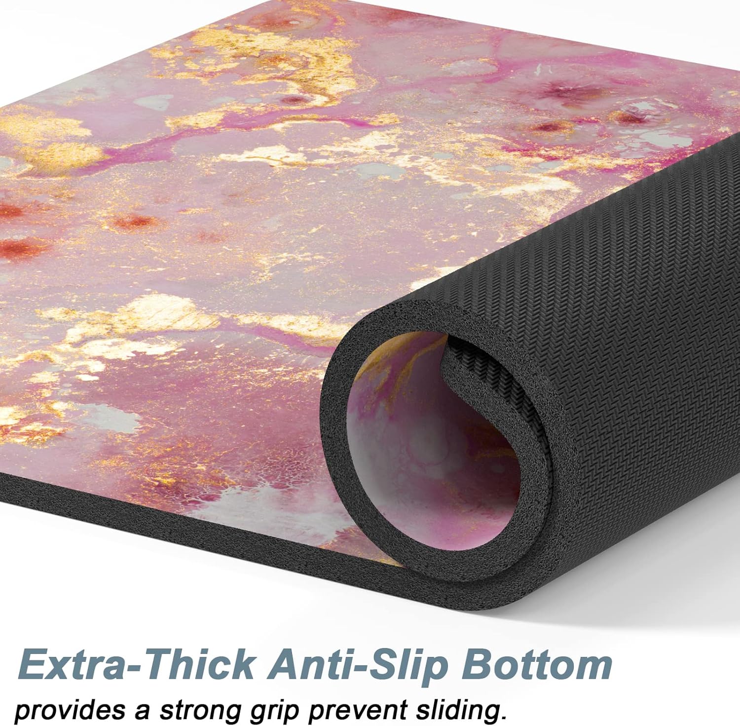 Rnivvi Dog Food Mat, 16" x 24" Absorbent Dog Cat Bowl Mat for Food and Water, Cute Anti-Slip Rubber Pet Feeding Rug Protect Floors, Puppy Placemat for Feeding & Watering Supplies, Pink Gold
