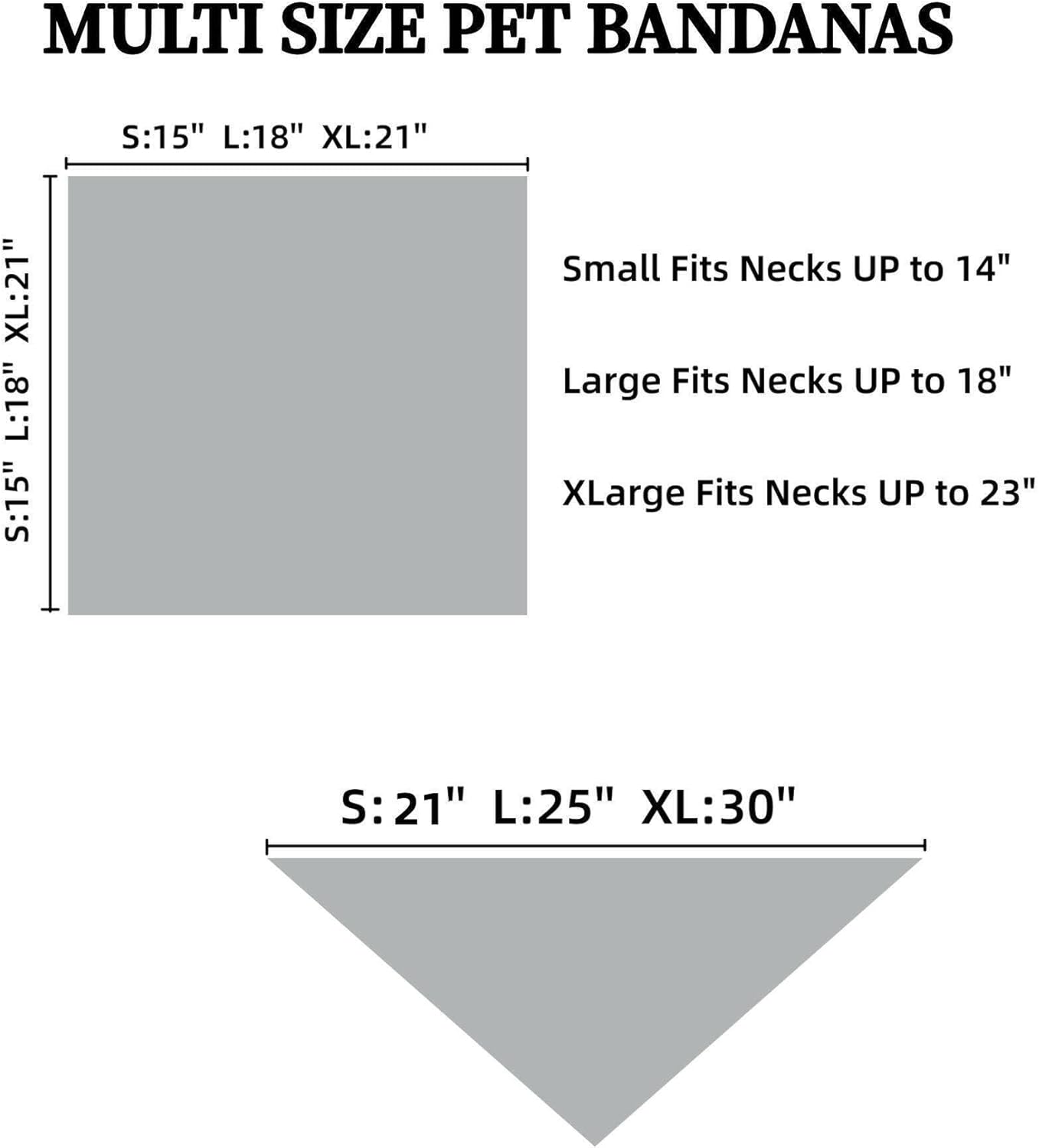 - Adjustable Size:15*15inches Small fits necks up to 14". 18*18inches Large fits necks up to 18". 21*21inches Xlarge fits necks up to 23". Please measure your pet's neck and leave room to tie knot.