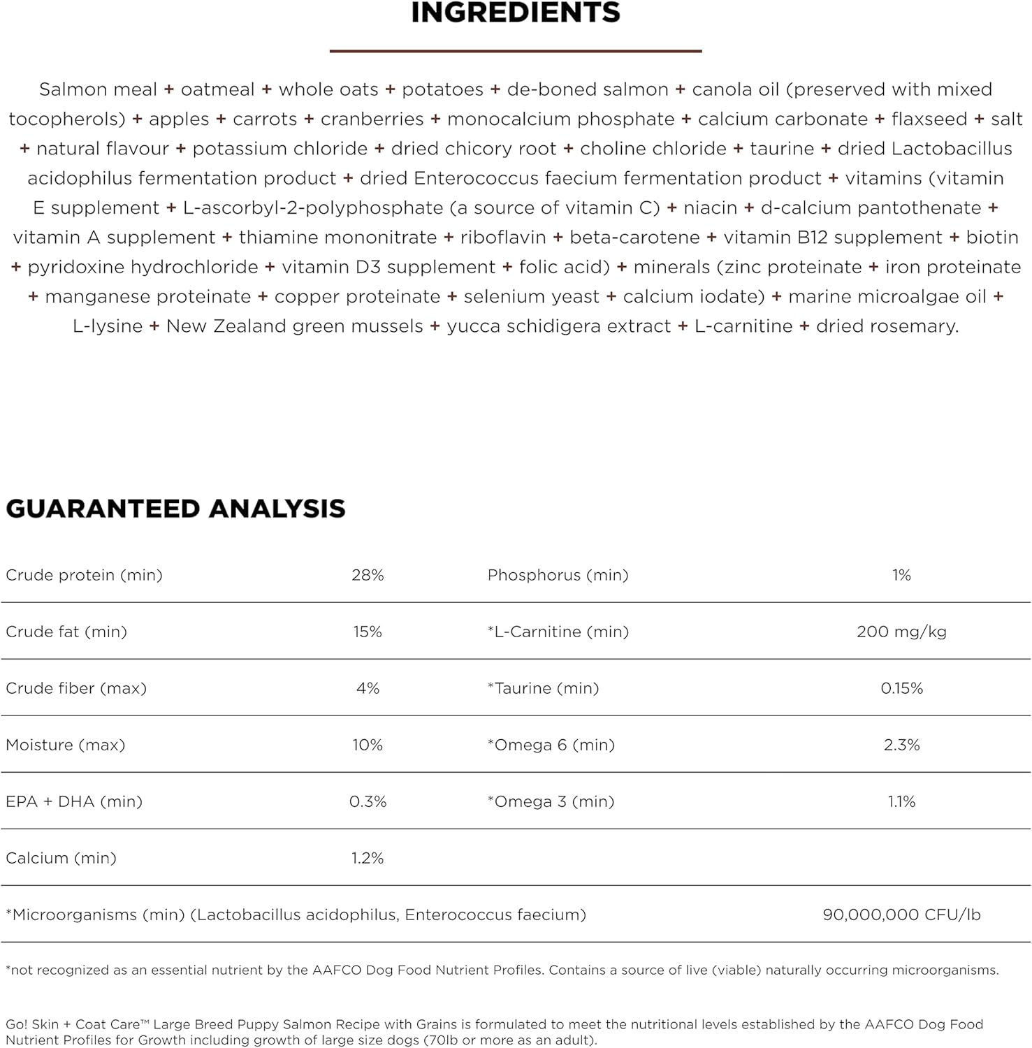 Go! Solutions Skin + Coat Care, Dry Dog Food, Large Breed Puppy Salmon Recipe with Grains, 12 lb Bag