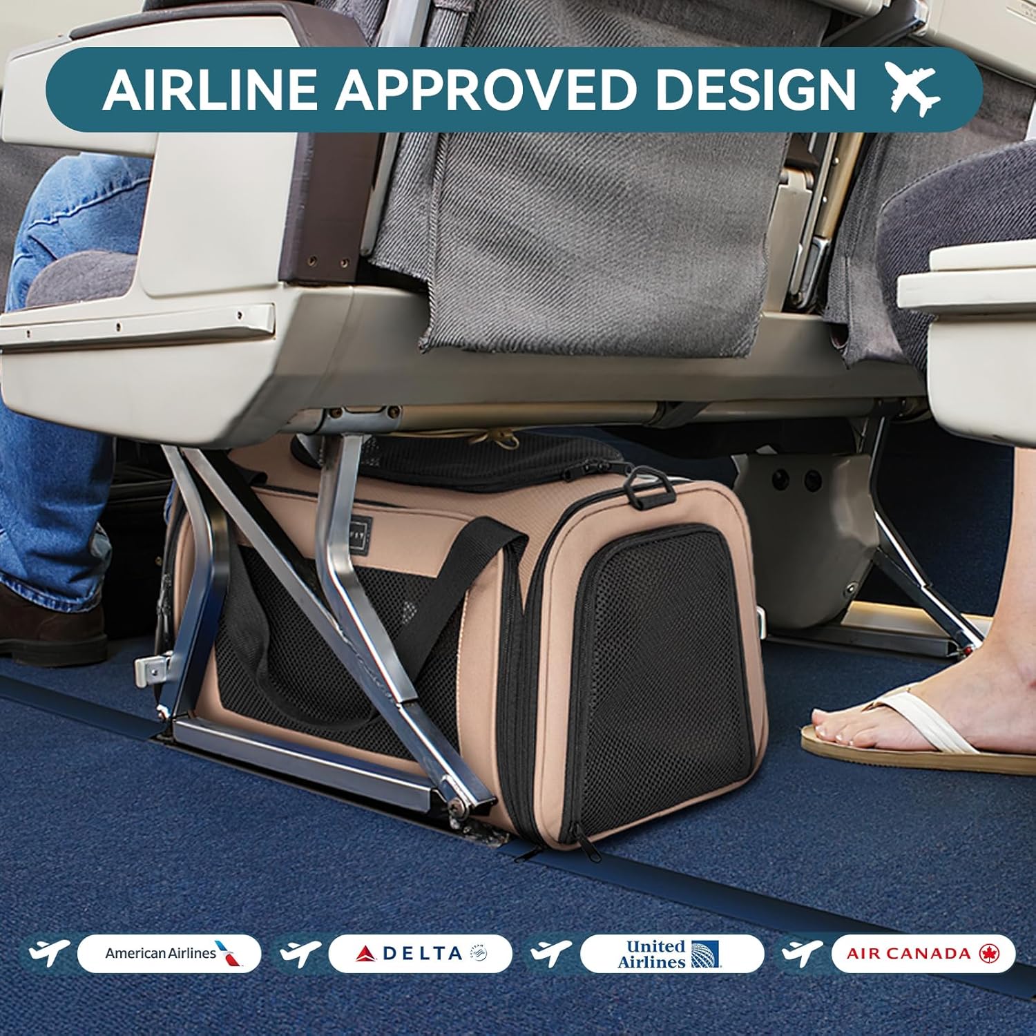 - [Dog Carrier Airline Approved] With an airline-approved design, Conforms to the under-seat dimensions of most airlines, you can take your pet to go to everywhere. The pet carrier for cat comes with an extendable cozy fleece pet mat, which offers extra sleeping space for your traveling pet.