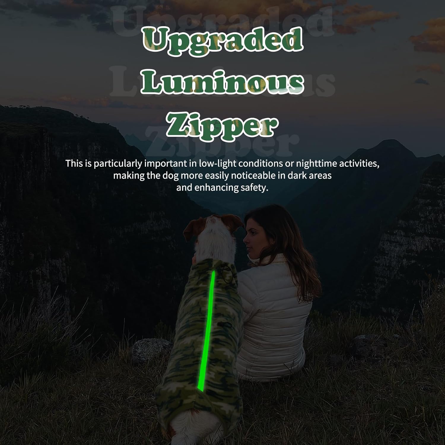ROZKITCH Camouflage Dog Winter Coat Soft Fleece Pullover Pajamas, Pet Windproof Warm Cold Weather Jacket Vest with Luminous Zipper, Jumpsuit Apparel Outfit Clothes for Small Medium Large Dog Camo M