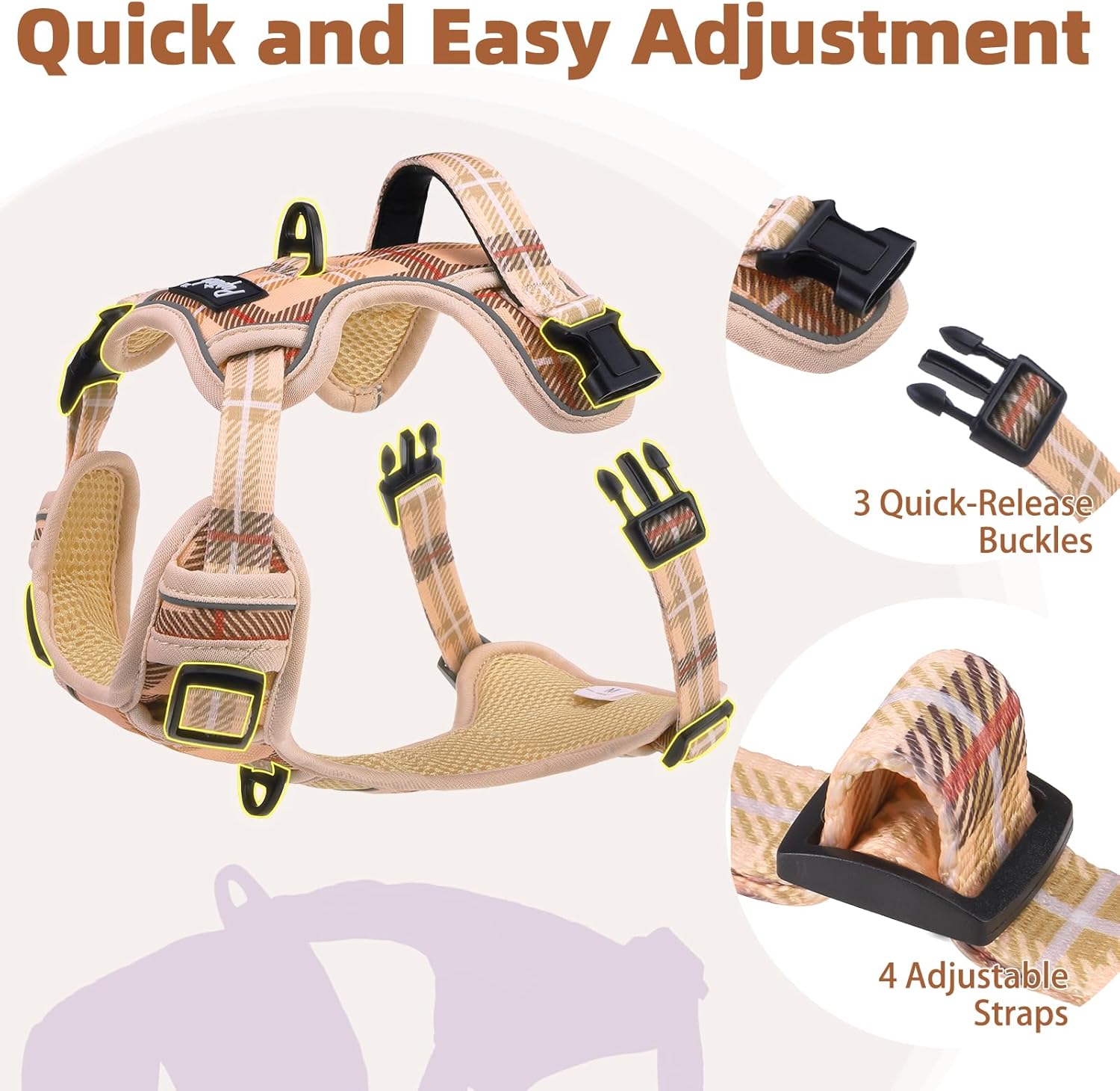 PUPTECK No Pull Dog Harness for Large, Adjustable Reflective Dog Harness with Handle Easy Control, Comfortable Soft Padded Pet Vest Harness for Large Dogs, Plaid Beige L