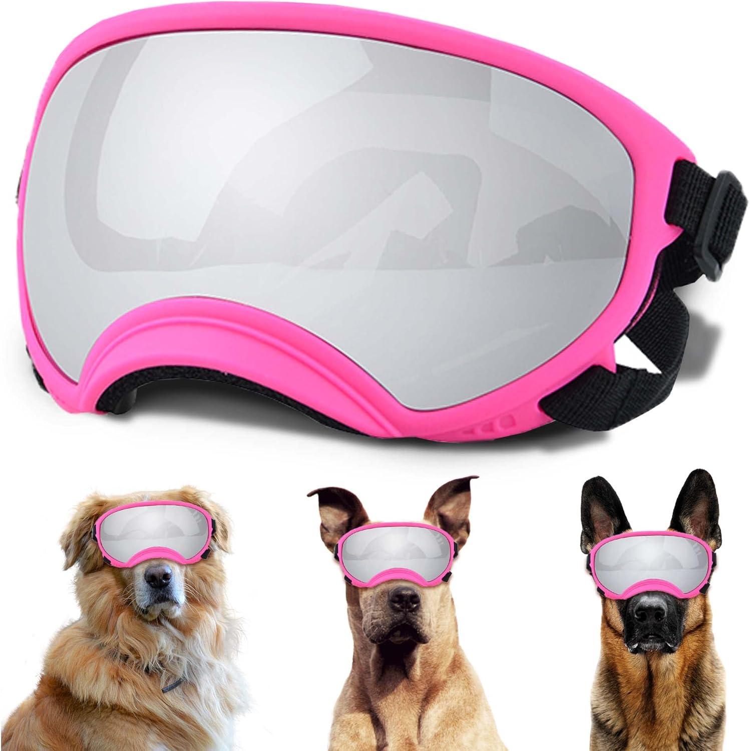 Large Dog Sunglasses with Adjustable Strap UV Protection, Winproof Puppy Sunglasses, Suitable for Medium-Large Pet Glasses, Dogs Eyes Soft Goggles, PinkSilver, (YD-23032706)