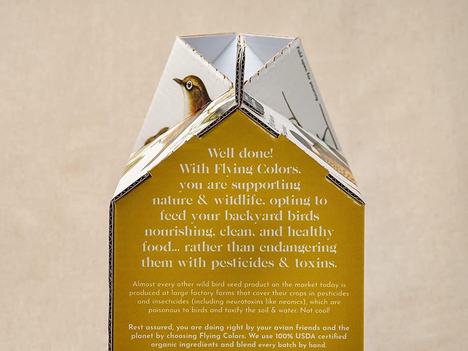 Flying Colors Premium Organic Wild Bird Seed | Squirrel-Proof Safflower Seed | 100% USDA Organic, No Fillers, No Pesticides | 3 Gallon Easy-Pour Carton