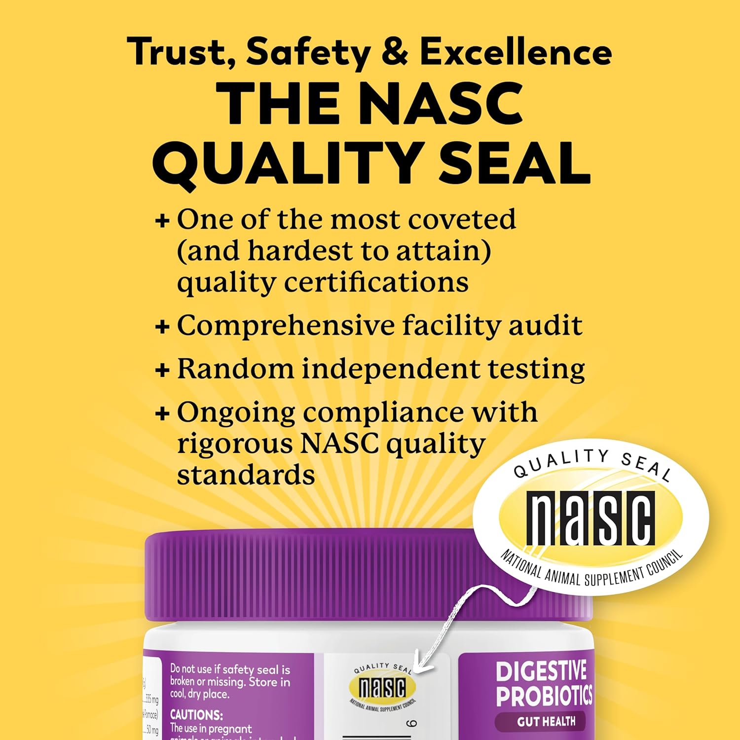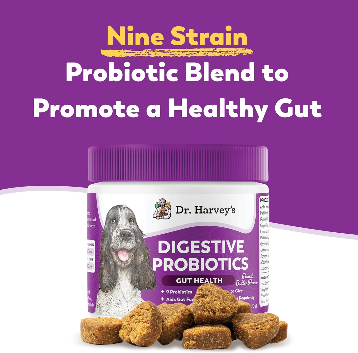 - NASC Quality Seal - Dr. Harvey's Probiotic Soft Chews have been reviewed by the National Animal Supplement Council (NASC), which ensures that they meet the highest quality standards. You can trust that you are giving your dog a safe and effective supplement that has been rigorously tested for quality and purity