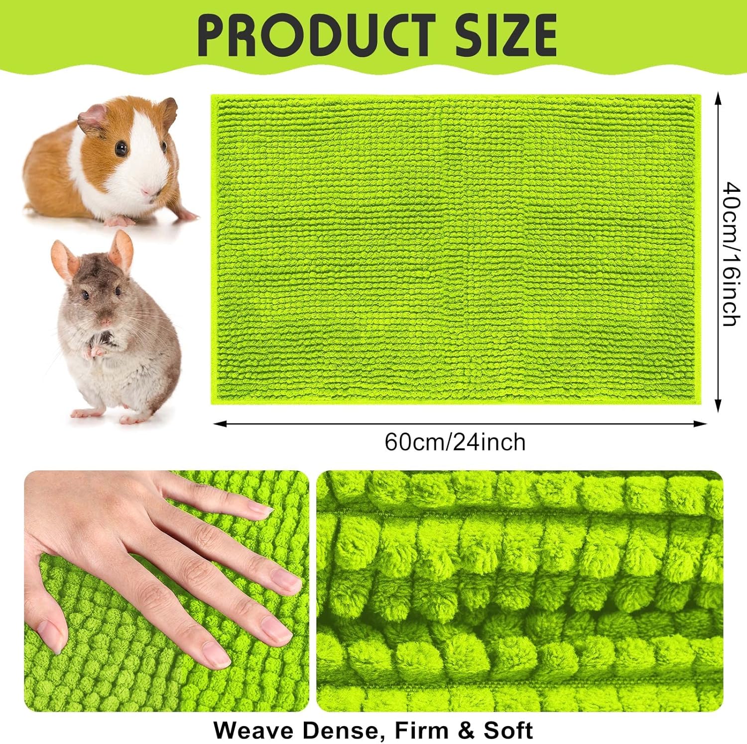 - Proper Size for Small Pets: our guinea pig cage liners come with a size of about 16 x 24 inches/ 40 x 60 cm, suitable for small animals, such as guinea pigs, rabbits, chinchillas, squirrels, hamsters, rats, puppies, hedgehog, ferrets, cats and other similar size small pets, and can also serve as dog bowl pads or cat litter pads to keep areas clean and tidy