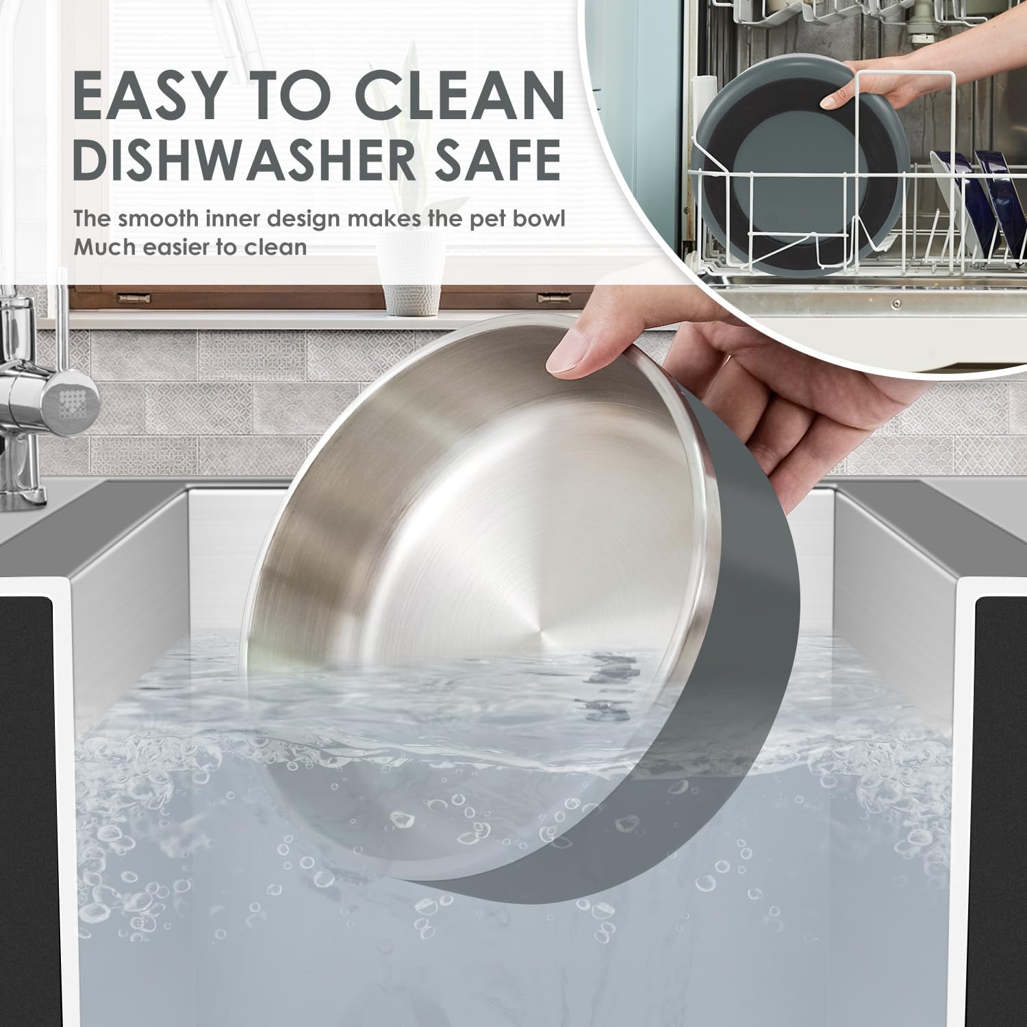 - EASY TO CLEAN-The stainless steel dog water bowl uses polishing technology to create a smooth surface. These crafts can help you easy to clean and wipe. These metal bowls are perfect for dogs, cats, rabbits or other animals.