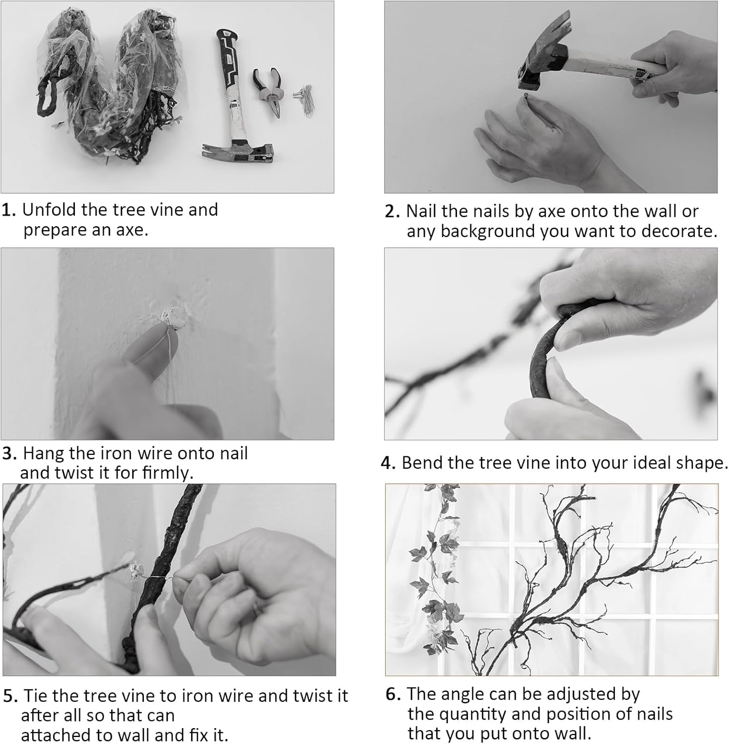 - 【Specification】Whole length of tree vine is 98in, the tree trunk diameter is about 0.8in. It's very pliable yet has a strong wire inside to keep it's position once in place. There are realistic elements all over it, from spots of natural looking moss and smaller branches.