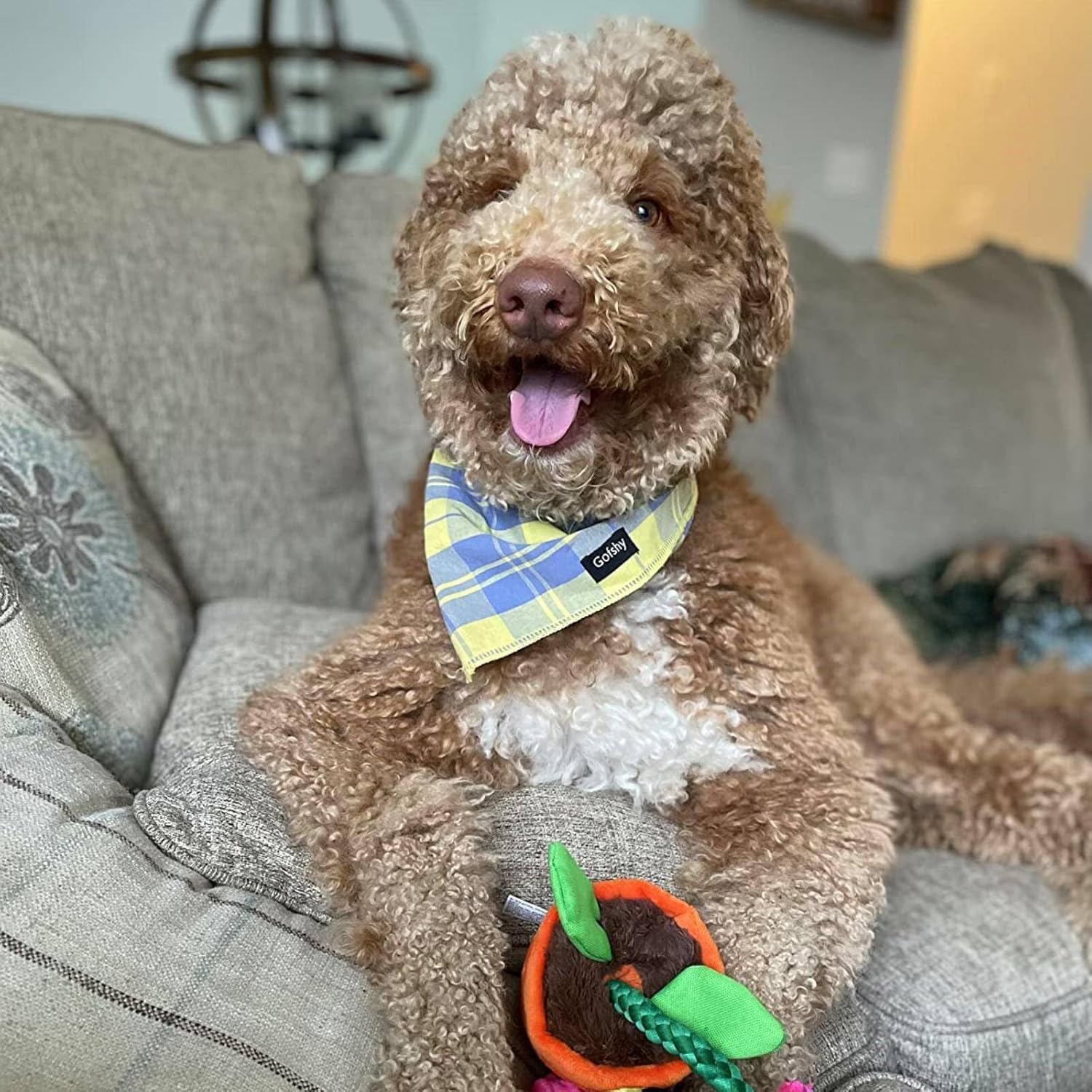 Summer Dog Bandana Large-Dog Scarf Vibrant Color Yellow Blue Plaid Printing Adjustable Bib Handkerchief Accessories for Medium Large Dogs (L)