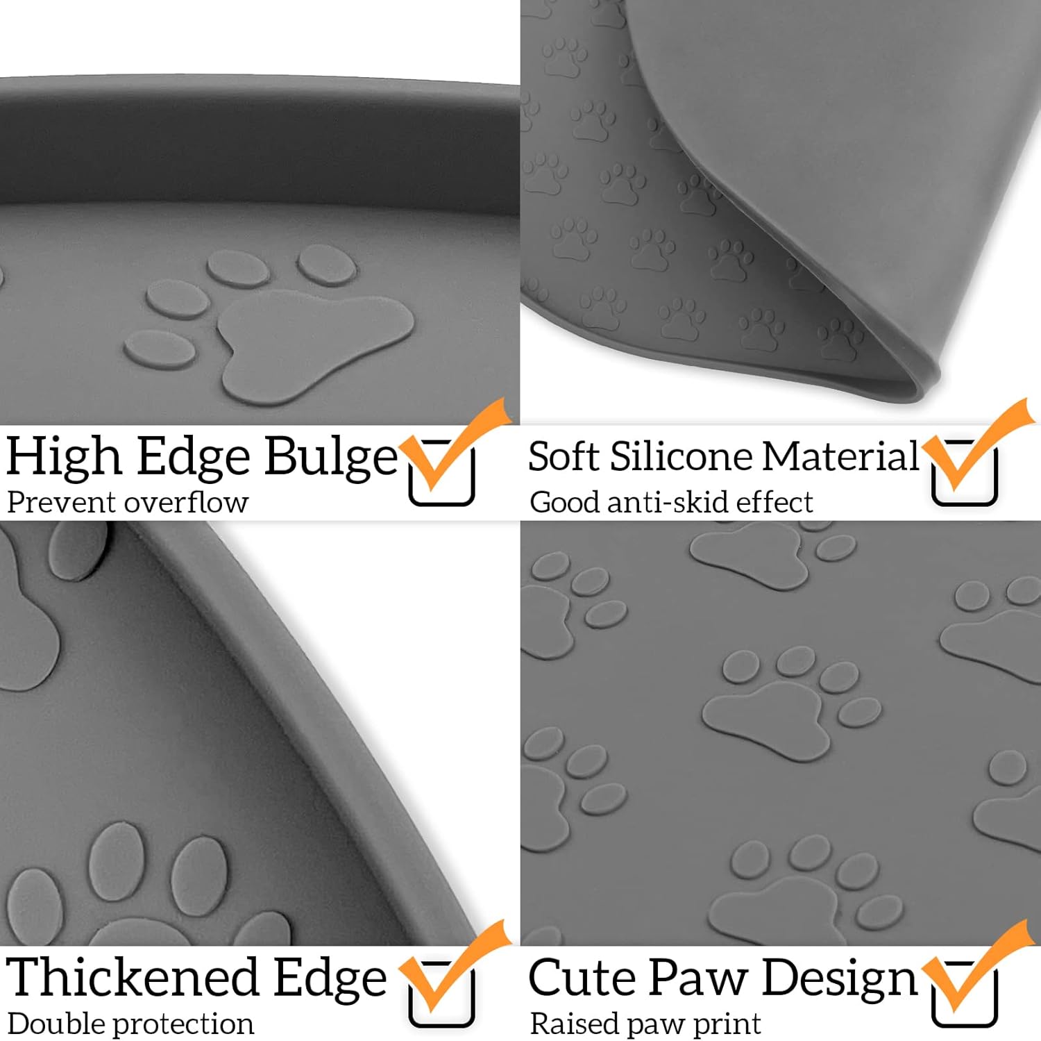 - 100% Waterproof and Anti-Slip: Our dog bowl mat with high-lip edges. Leak-proof pet placemats can prevent food and water overflow, and protect the floor. Prevent pets from eating contaminated food. Non-slip silicone mat keeps the bowl in place.