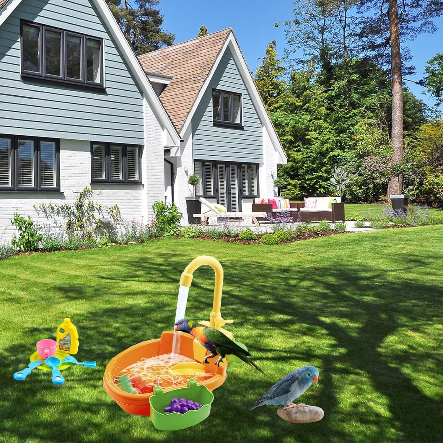 - 【 Pets and Children's Toys 】: The bird bath bathtub adopts an automatic faucet design and requires the installation of 2 AA batteries (not included), making it very easy to assemble and convenient to use. The sink can store various toys and small items, whether it's for children to play or for parrots/birds to take a bath.