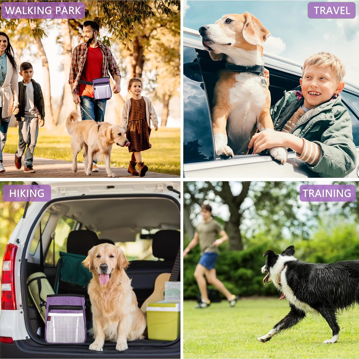 - Large Dog Treat Pouch [Best High-Capacity Option] — The dog treat bag is capable of holding more treats, accessories, and dog toys (and even larger items, like tennis balls) than most other options on the market. And a poop bag holder on back, so that you can prepare immediately when you need it