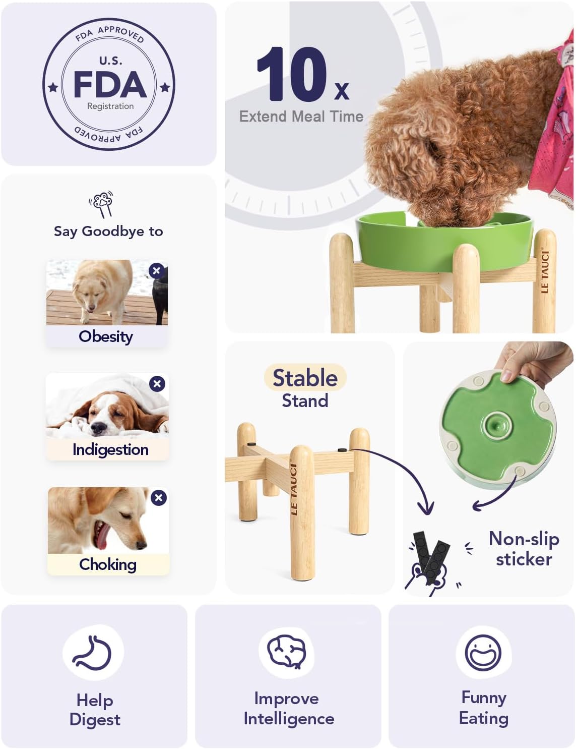- Slow Down Eating, Bring Dog A Healthy Diet: Fast-eating dogs experience bloat, regurgitation, and obesity easily. Our slow feeder dog bowl design with the ridges and maze pattern helps your dog to eat slower than 10 times. Your dog could change his overeating behavior through a challenge and fun mealtime