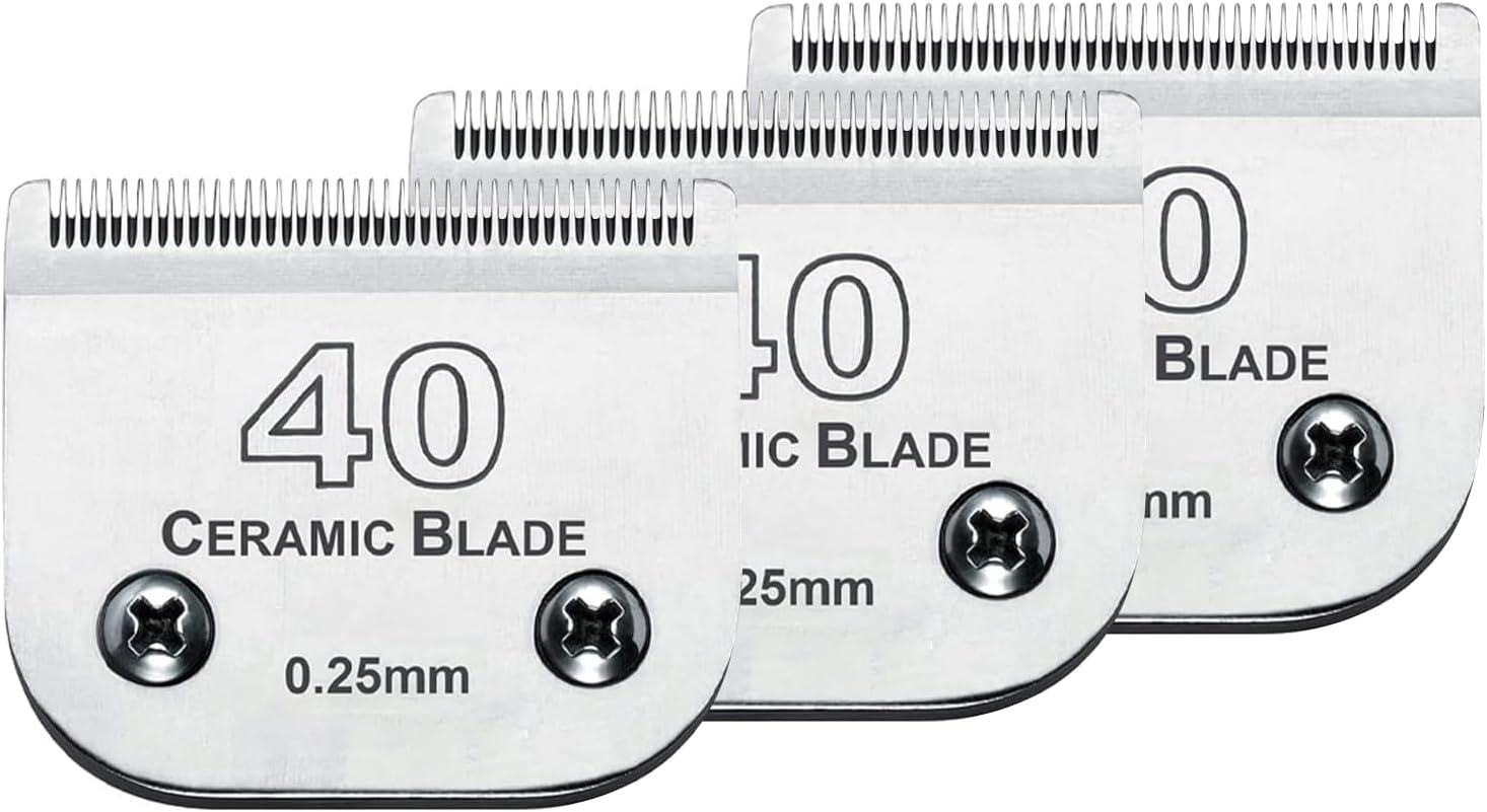 Audoc 3Pcs 40 Blade Dog Grooming Clipper Replacement Blades Compatible with Wahl/Oster Dog Clippers,Detachable Ceramic Blade & Stainless Steel Blade,Size 40 Cut Length 1/100"(0.25mm)