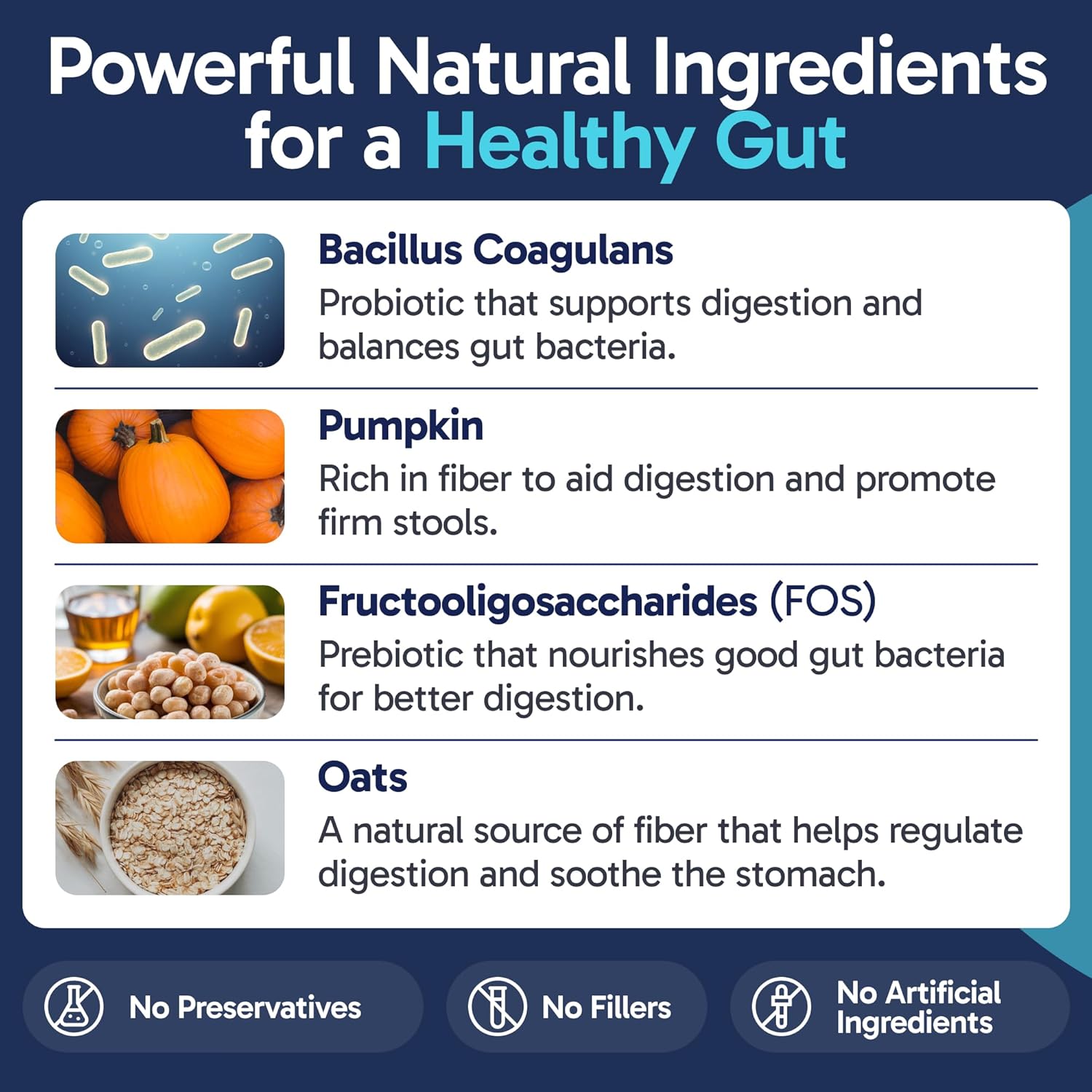 - Powered By Nature’s Best Ingredients: With pumpkin, oats, and FOS, these chews provide natural dog digestive support using fiber-rich, prebiotic, and probiotic ingredients for well-rounded gut health.