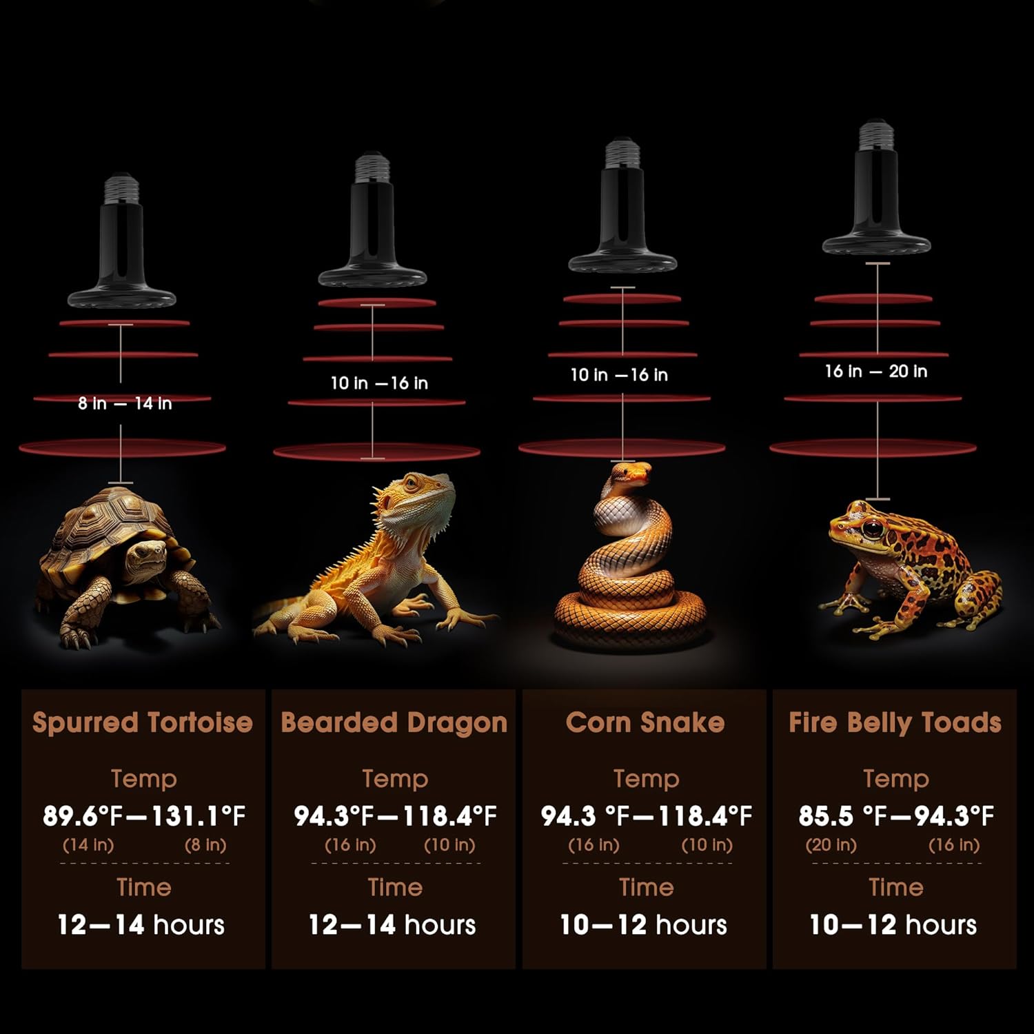 - 【Versatile Heat Lamp for Pets】Our black reptile heat light bulbs are designed to cater to a wide range of animals. Whether you have reptiles, birds, chicks, small mammals, or other pets, this versatile heat lamp provides the ideal temperature and comfort they need.
